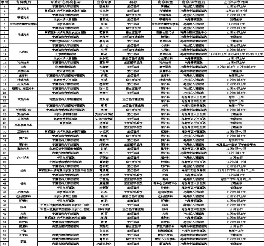知名专家来乌海市出诊信息