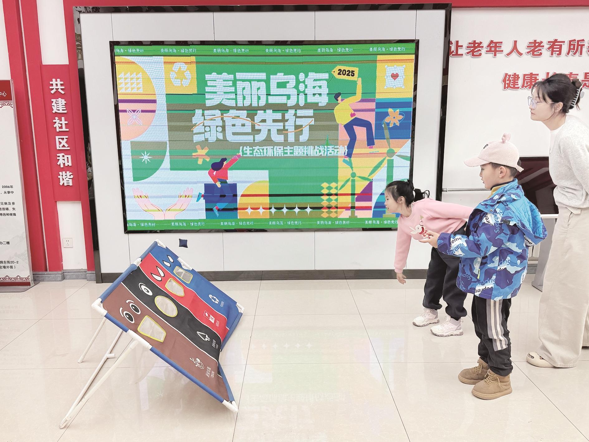 近日,乌海青少年创意园联合海勃湾区海北街道东山北社区开展“美丽乌海 绿色先行”生态环保主题挑战活动,以寓教于乐的活动形式,让环保理念深入人心。 (段维娜 摄)
