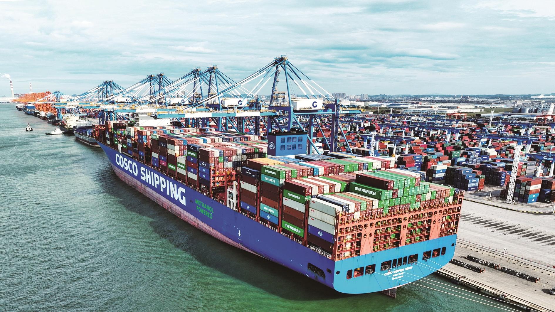 11月11日,一艘海轮在钦州港集装箱自动化码头卸货(无人机照片)。 记者11月30日从国铁南宁局获悉,截至11月29日,西部陆海新通道班列累计发送集装箱货物突破500万标箱、达500.3万标箱,其中今年以来发送突破130万标箱,同比增长55.3%,保持强劲增长势头。近年来,西部陆海新通道班列辐射范围不断扩大,实现多船企、多港口、多品类全面发展,图定班列线路由2019年的2条增至2025年的26条。