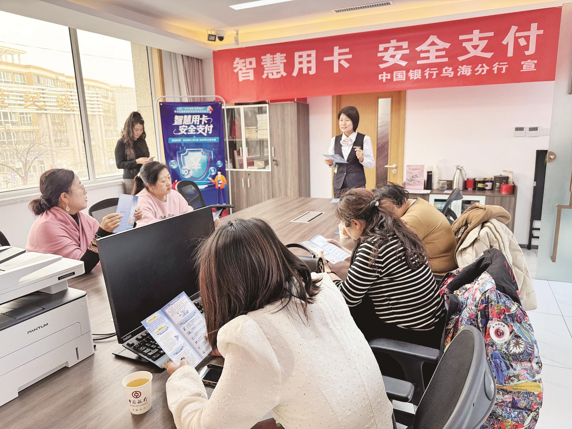 近日,中行乌海分行滨河支行立足厅堂开展金融知识宣讲活动,引导客户学习金融知识,增强防范意识,提高金融素养。 (曹沥元 摄)