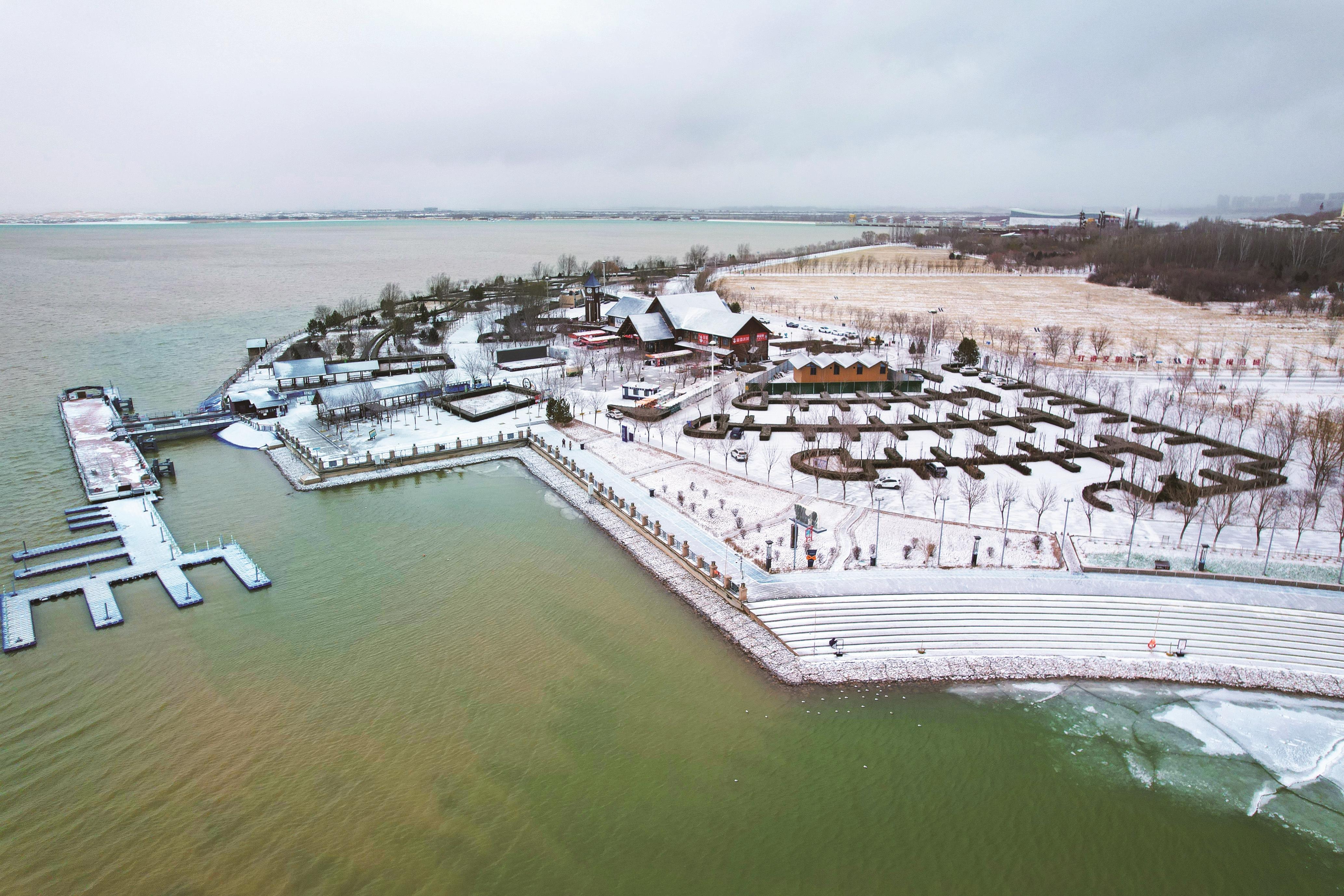 冬日里的乌海湖旅游景区。