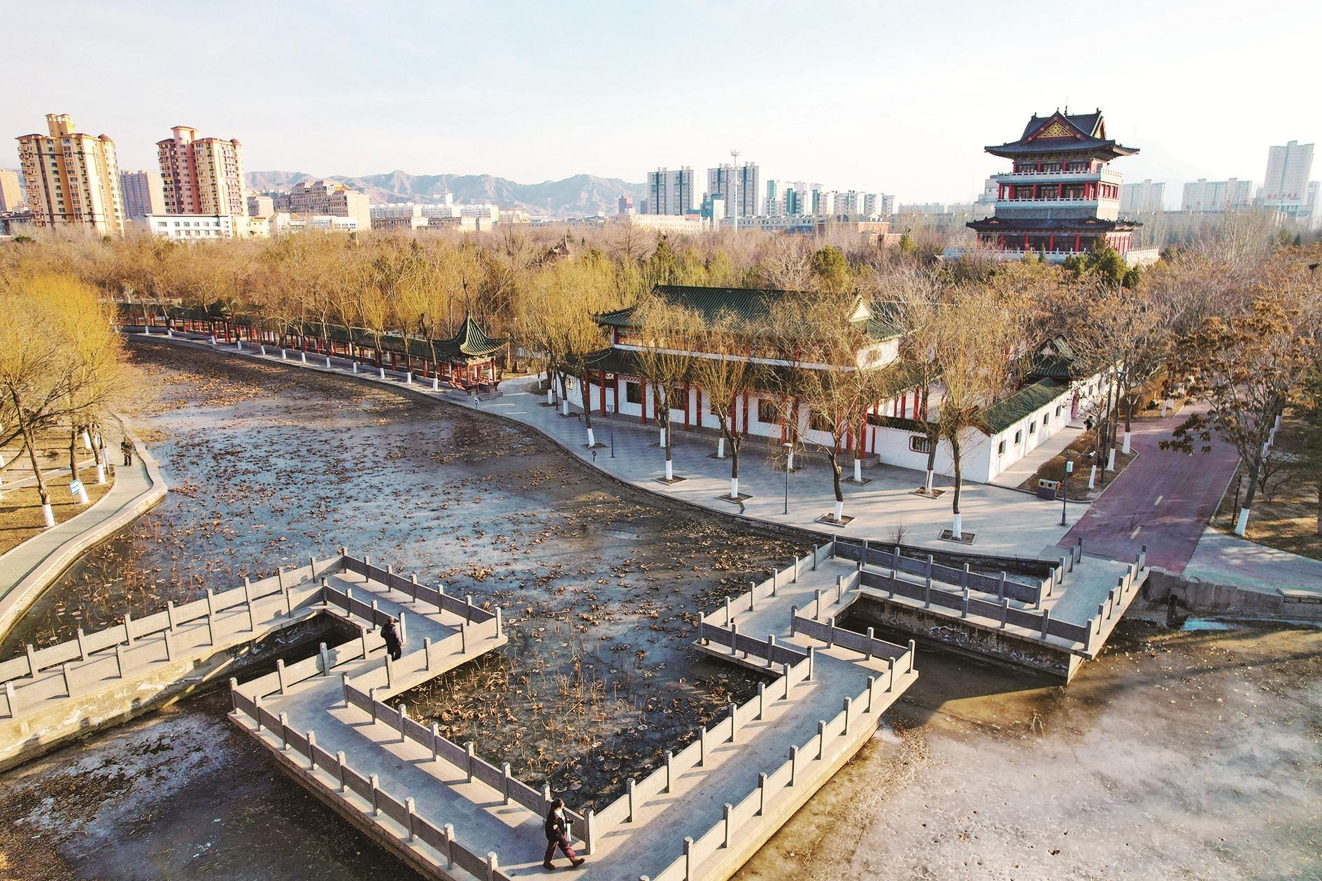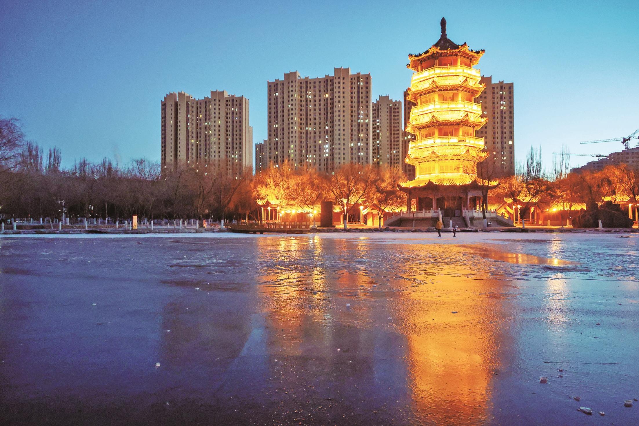 冬日的乌海市人民公园,俨然一幅层次丰盈的冬日长卷。冰封的湖面如玉镜般舒展,枯萎的柳叶零星散落其上,为素净的冰面添了几分自然野趣;岸边芦苇荡在朔风中轻摇,絮影翩跹间漾开灵动韵律。园内,游客三三两两悠然漫步,或舒展筋骨晨练,笑语与风声交织相融,让这片冬日景致既有冰封时节的清朗静谧,又不失人间烟火的鲜活暖意,尽显乌海冬日独有的明朗与安然。