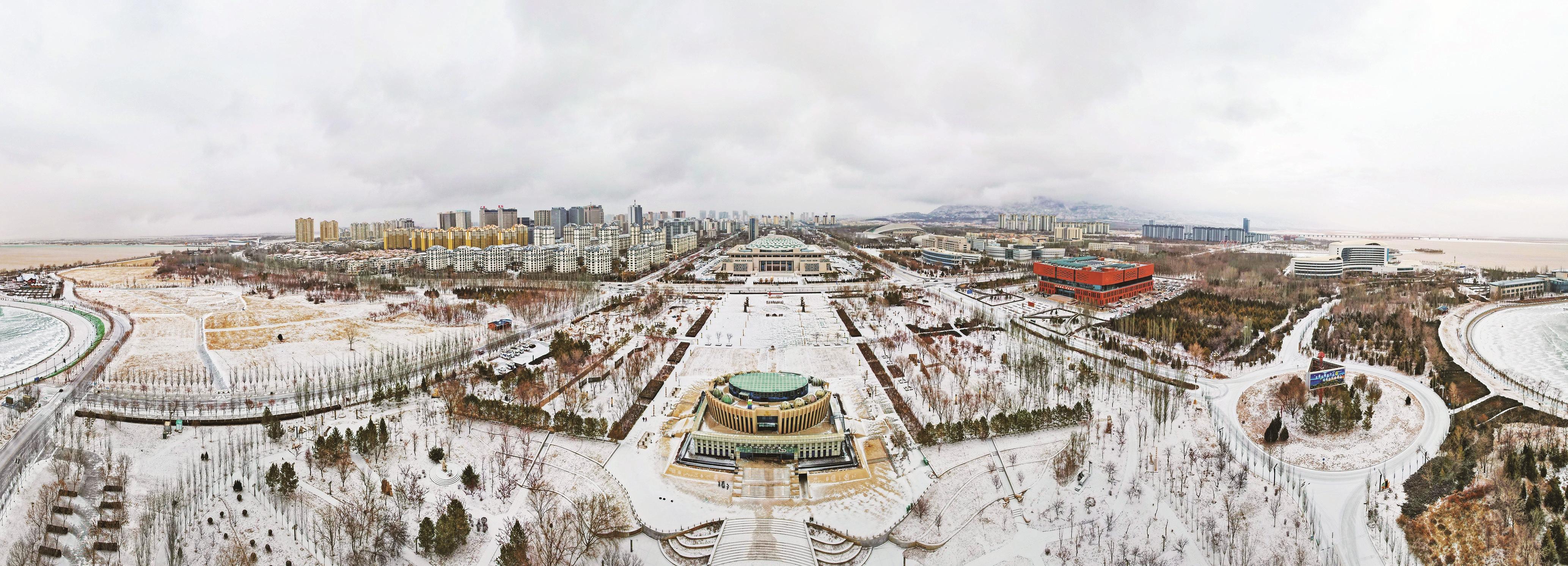 一场小雪过后,滨河新区俨然成为一个银装素裹的世界。