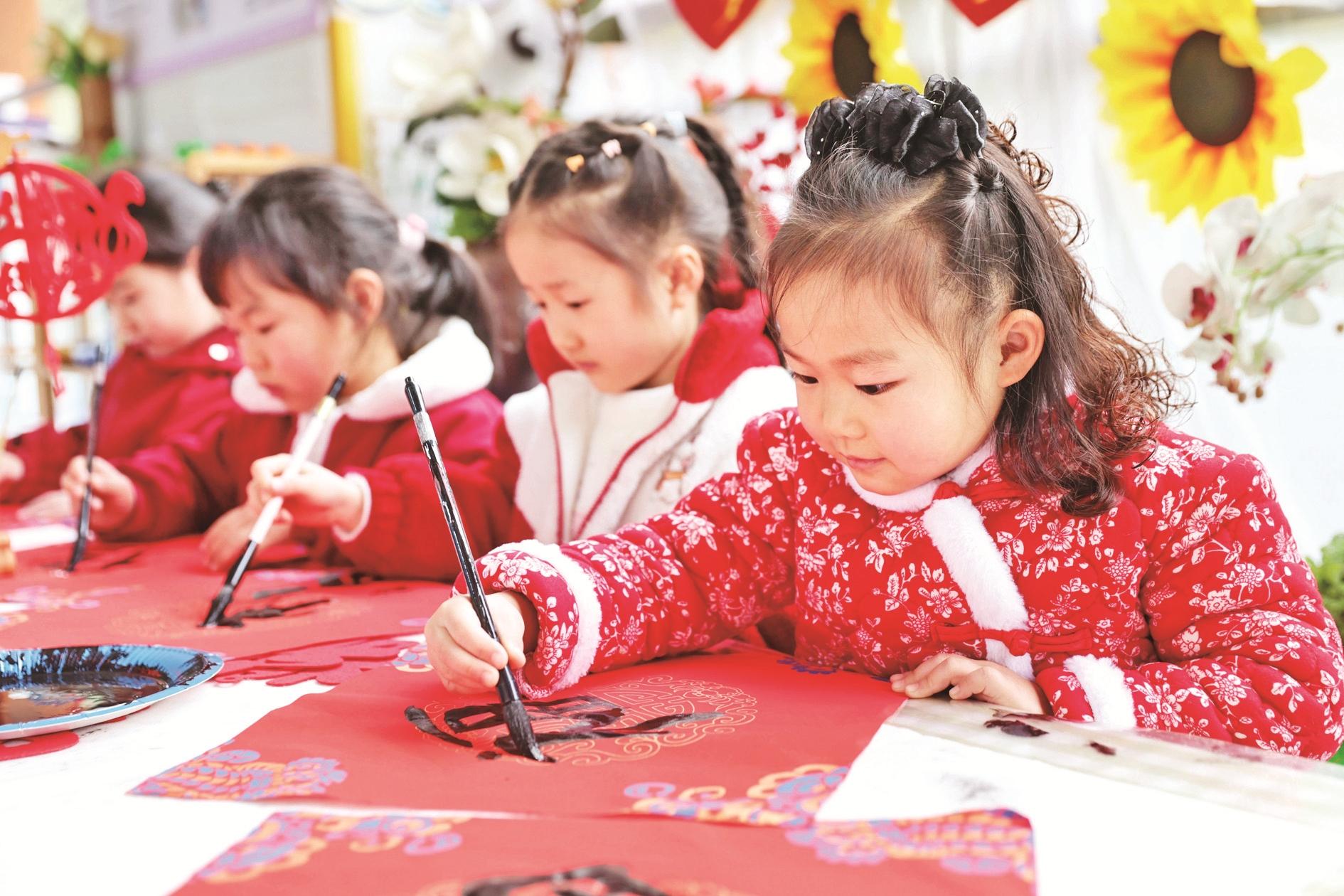 12月29日,贵州省贵阳市开阳县第二幼儿园的小朋友书写“福”字迎接新年。新年将至,各地开展丰富多彩的活动,人们在欢乐的氛围中迎接2026年的到来。 新华社发(袁福洪 摄)