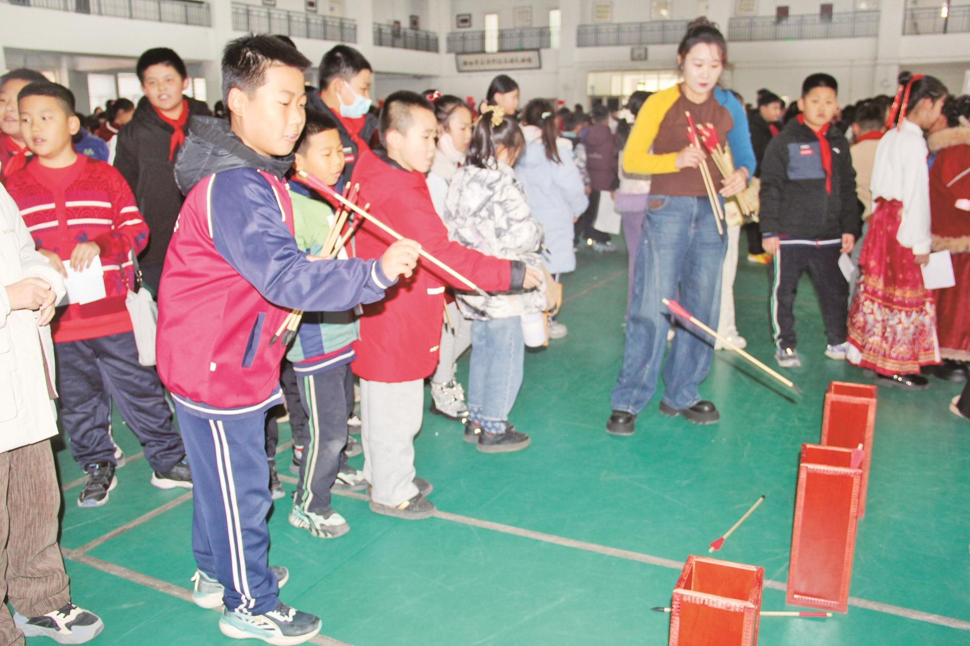 近日,海勃湾区滨河小学开展“民俗润童心”主题活动,将飞花令的雅致、写春联的意趣与投壶互动的温暖融为一体,串联起民俗文化的多重内涵,让孩子们在趣味体验中感知中华优秀传统文化。 (陈洋 摄)