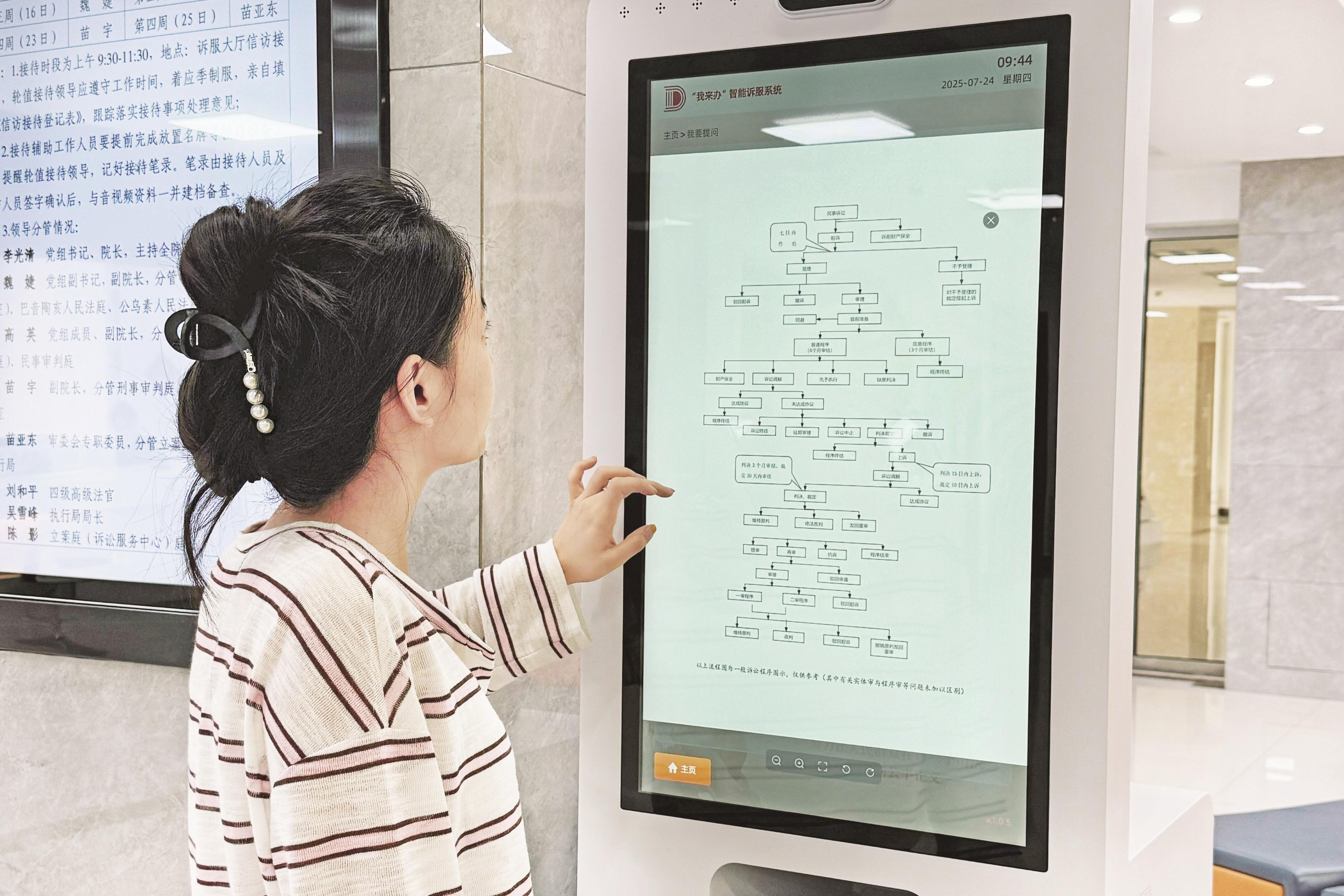 “智能AI诉服一体机具有文本回复、文图回复、工具回复、自定义问答等功能,当事人通过智能AI诉服一体机进行民事诉讼相关问题查询、提问时,诉服一体机支持文本、图文等回答方式,有效提升司法服务效率。”海南区人民法院立案庭诉讼服务中心工作人员贾薇说。
