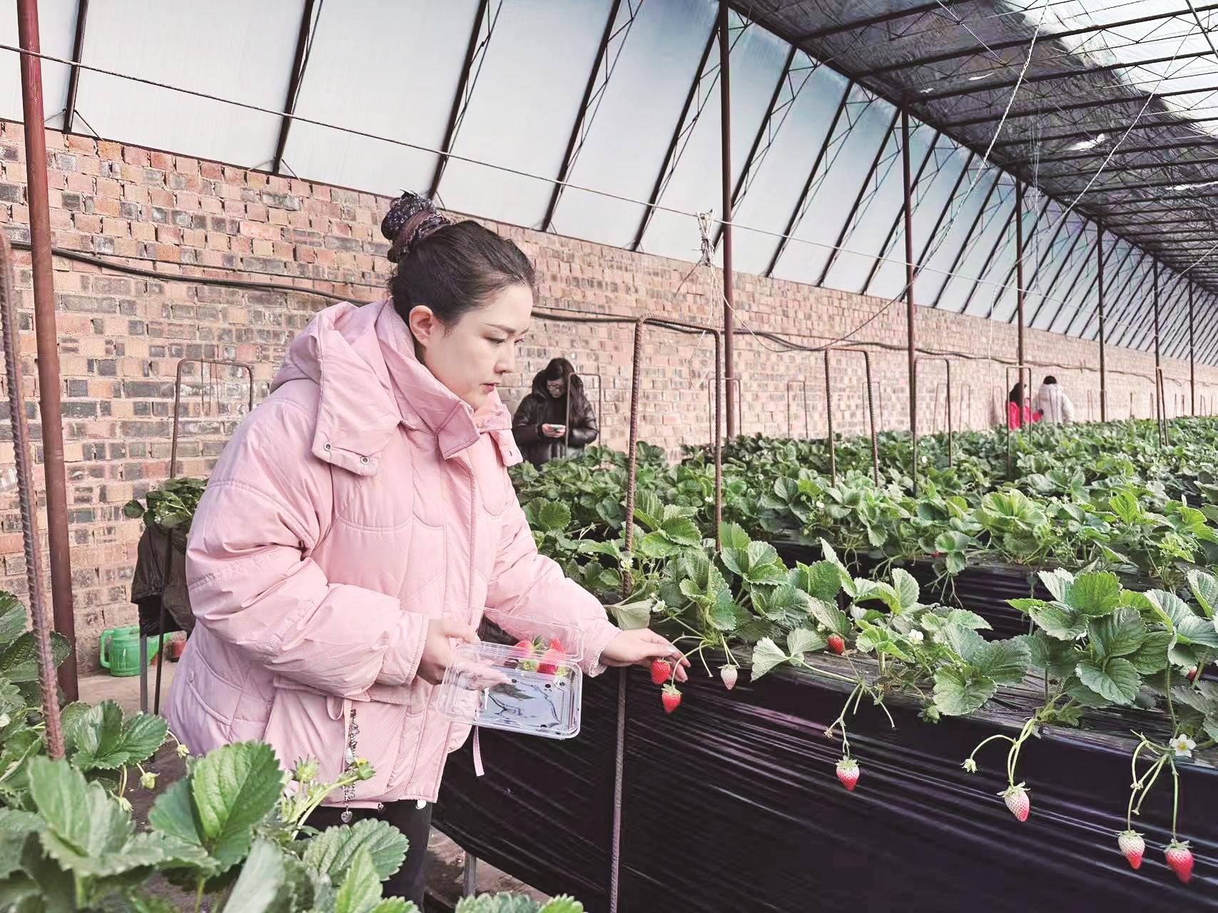近日,在乌达区乌兰淖尔镇泽园新村的温室大棚里,一颗颗饱满红润的草莓点缀在绿叶间,吸引了众多市民前来体验采摘乐趣。