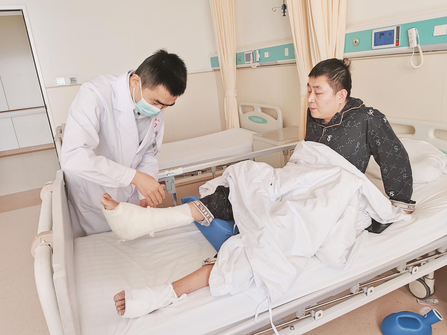 “右脚恢复得怎么样?行动不便的话随时叫护士来帮你。左脚手术已经准备就绪,术后休养2个月,能够恢复正常行走。”市人民医院运动医学科主任张忠在查房时对患者赵先生说。