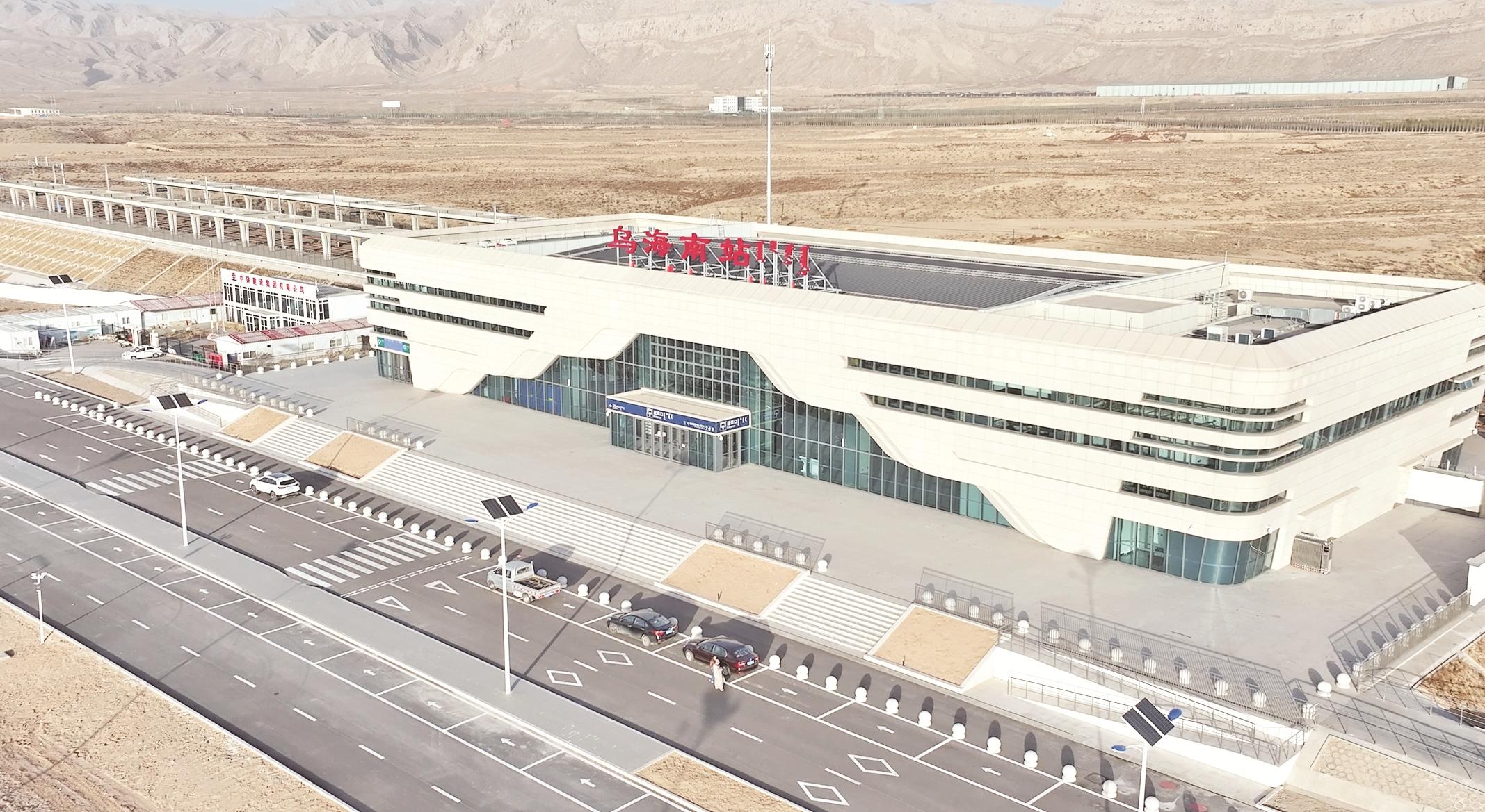 包银高铁全线贯通后,海南区迎来了“高铁时代”。2025年12月23日,乌海南站正式开通运营,随着D4668次动车组列车抵达,首批100名旅客从这里开启了便捷出行新旅程。乌海南站按2站台4线规模建设,可同时容纳800名旅客候车,相关配套设施也一应俱全。乌海南站的开通使用不仅填补了区域高铁网络的关键节点空白,更将为西北高铁路网完善和区域经济发展注入新活力。图为乌海南站航拍图。
