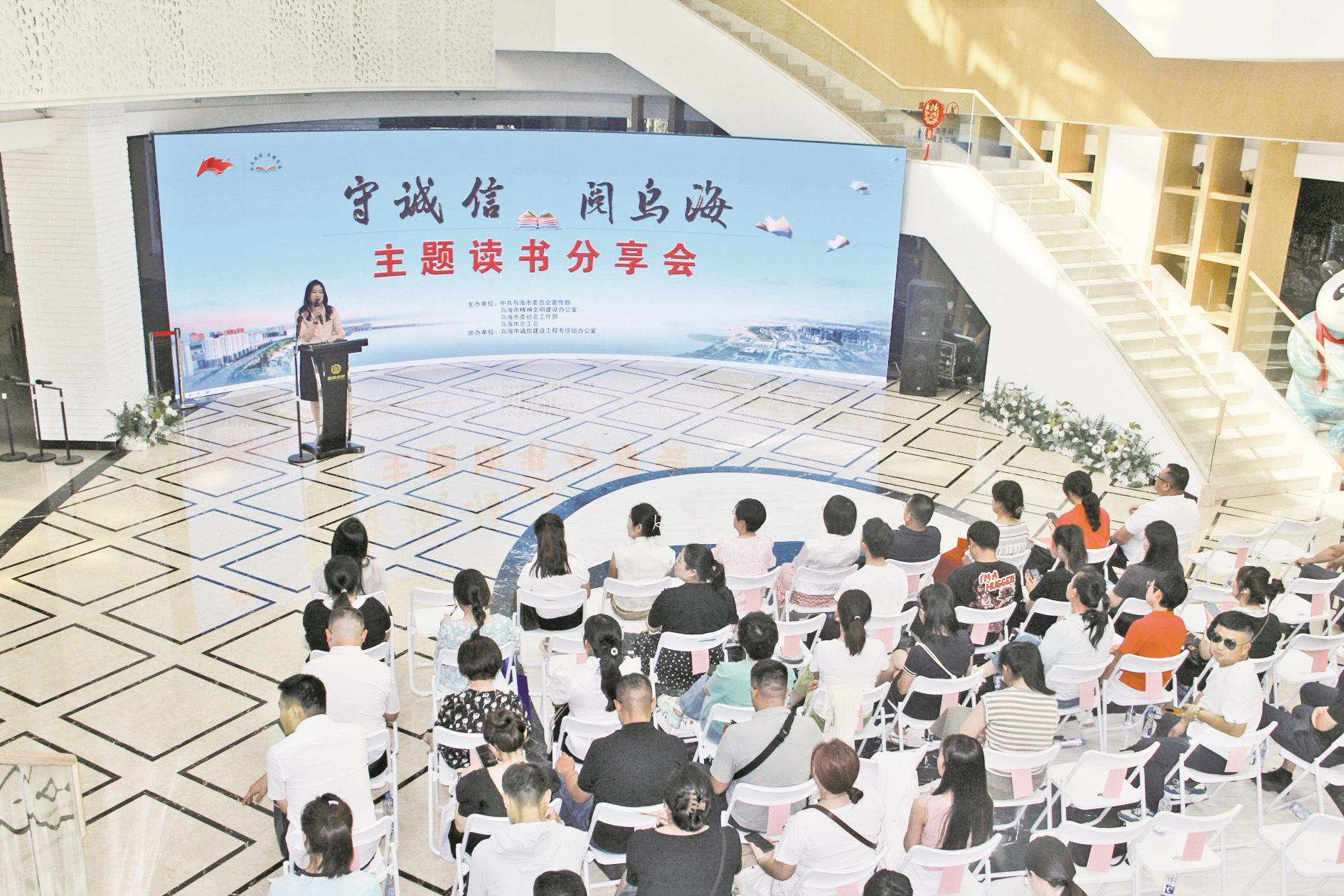 “这场读书会是‘书香乌海 YUE在海勃湾’的一个板块,主题是‘书香勋章 卷藏心间’热缩片书形胸针DIY活动,这是一场书香与巧思碰撞的创意活动。”周敏分享道。她经常会在业余时间参加“书香乌海 YUE在海勃湾”系列阅读活动。“有的时候在社区书屋举办,有的时候在图书馆里举办,夏天天气好的时候,还会在户外举办,不光举办地点呈现出‘遍地开花’的态势,就连每次的主题和形式都不一样,这对激发参与者的阅读热情很有帮助,也让书香浸润在城市的各个角落,让更多人享受到阅读带来的美好。”她说,当自己与其他阅读爱好者分享喜欢的书籍,或者与他们交流一些阅读感悟,这本身就是一件很有意义和吸引力的事情。