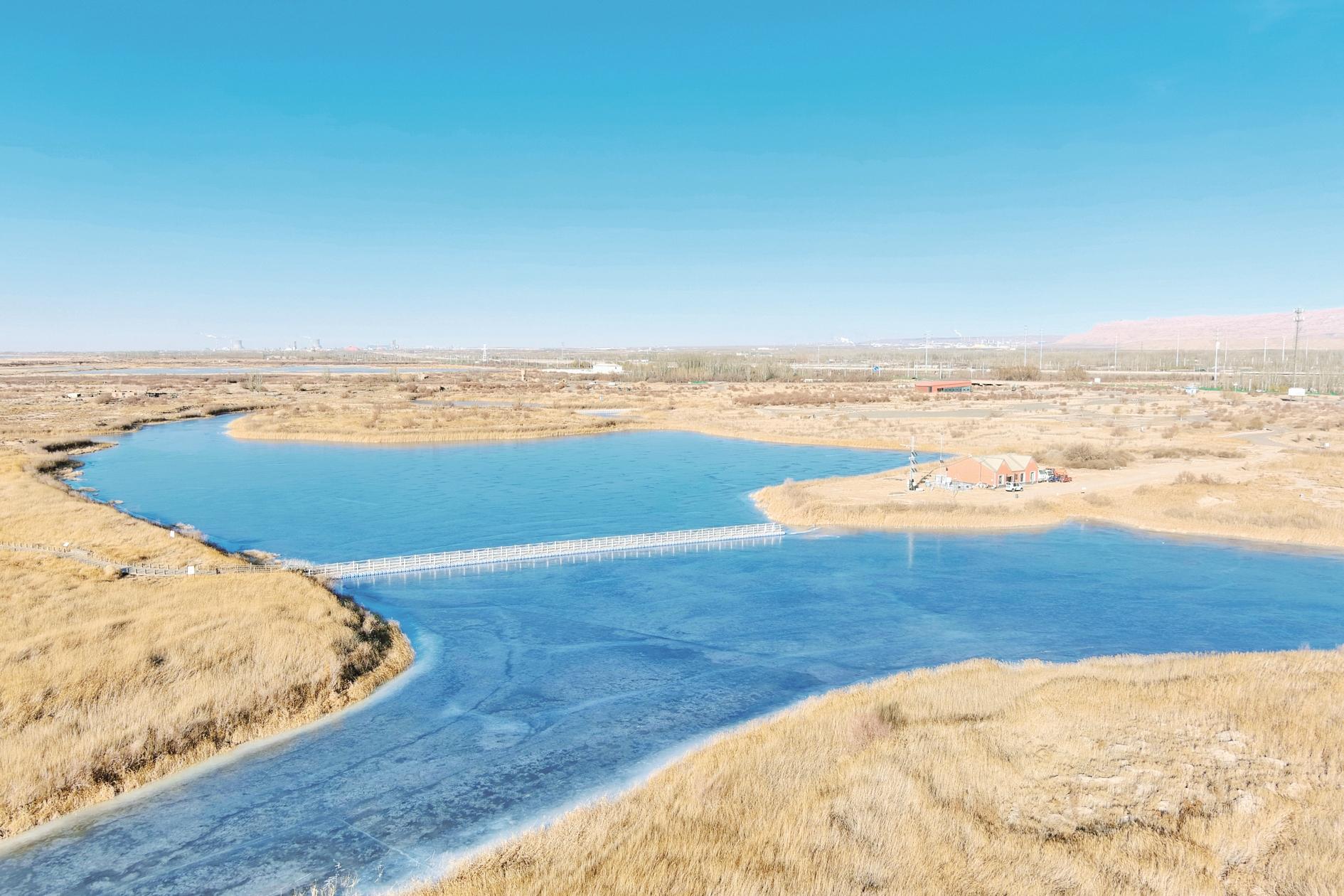 暖阳之下,龙游湾国家湿地公园展现出浓郁的冬日之美,金黄色的芦苇随风舞动,各类灌木点缀其间,宛如大自然的调色盘,勾勒出一幅独特的冬日湿地画卷。(王超 摄)