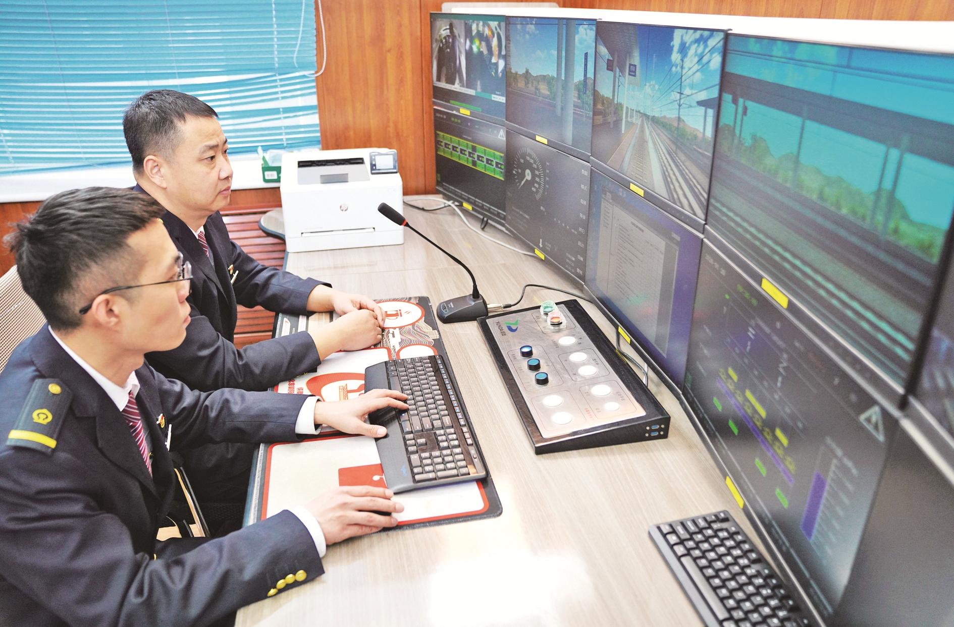 1月20日,中国铁路北京局集团有限公司怀柔北机务段的动车组司机在模拟驾驶实训基地进行盯控练习。春运临近,中国铁路北京局集团有限公司通过高科技设备加强对动车组司机的模拟实训和动车组列车及轨道线路的检修维护,全力保障旅客平安出行。 新华社记者 李安 摄