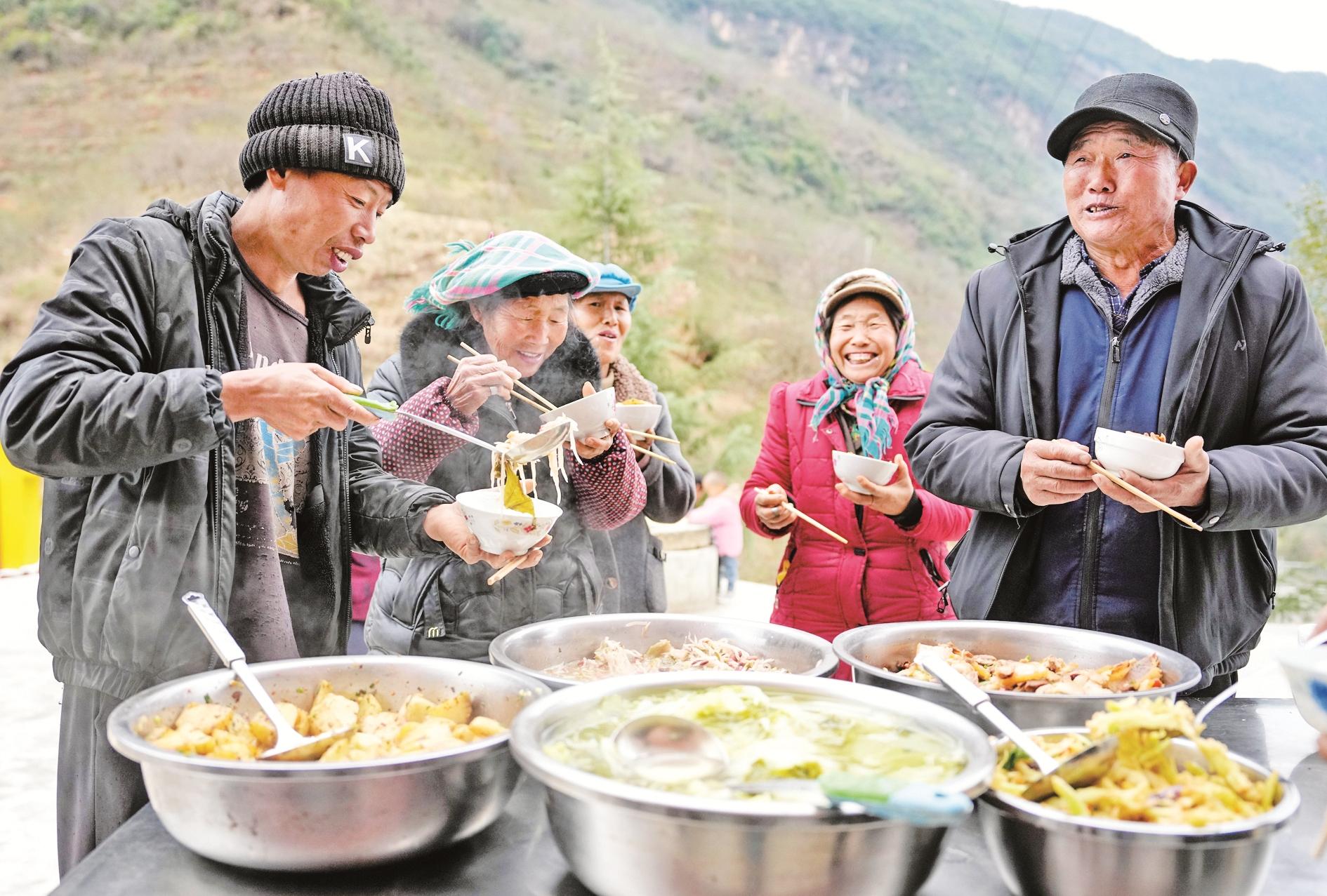 1月19日19时32分,云南昭通市巧家县发生5.1级地震,震源深度10公里。这是1月20日,巧家县包谷垴乡红石岩村村民在村委会临时安置点吃中午饭。新华社记者 陈欣波 摄