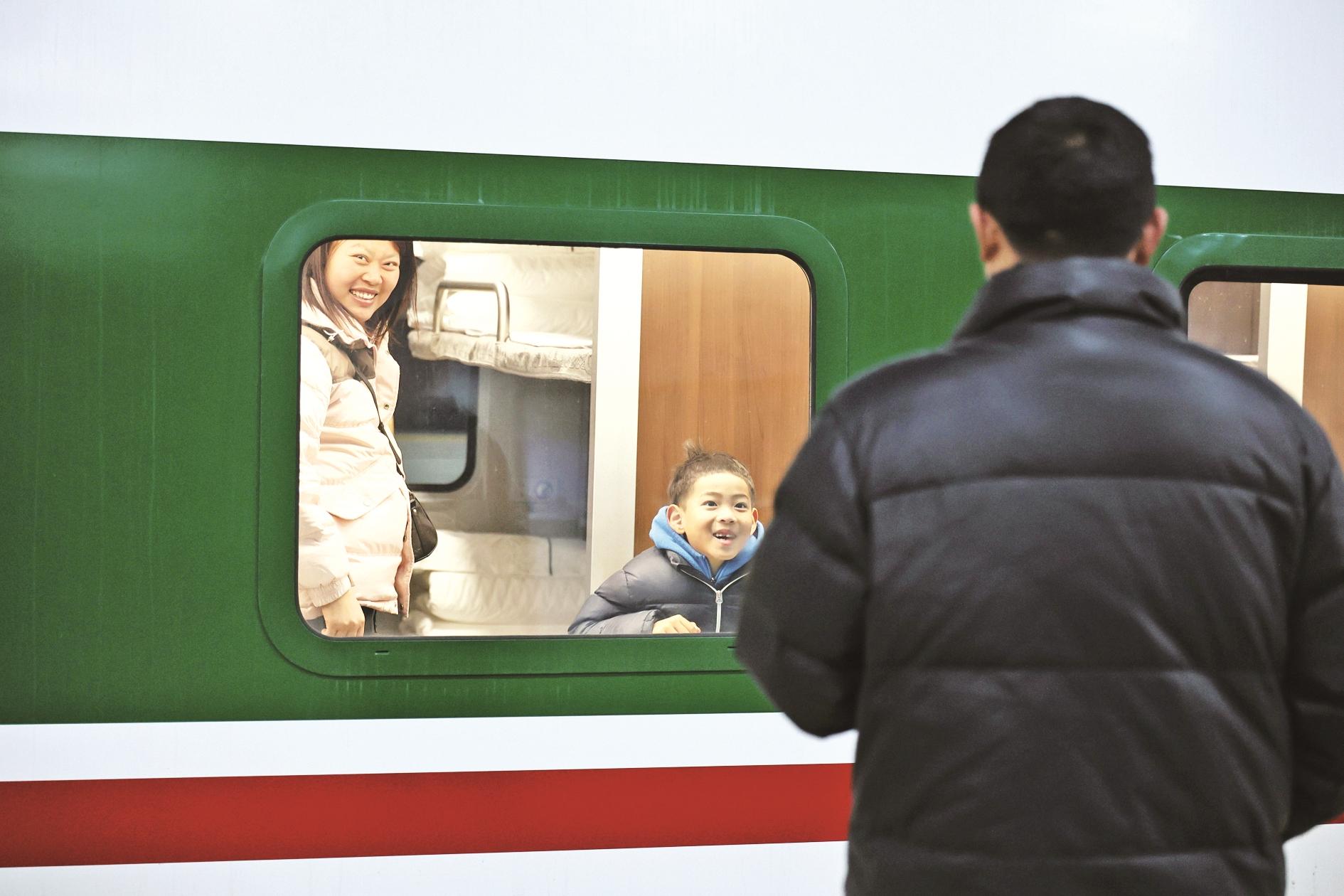 1月19日,天津首次开行复兴号动力集中型动车组列车。这是旅客在天津站隔窗送别。新华社记者 李然 摄