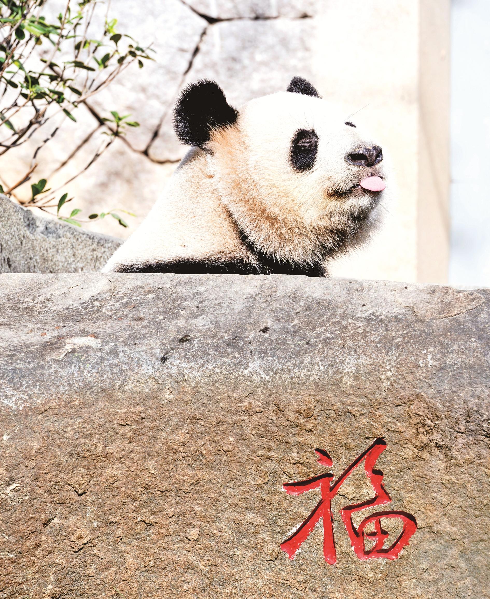 1月17日,从成都远道而来的大熊猫“荣耀”在福州熊猫世界洗澡。 新华社记者 魏培全 摄