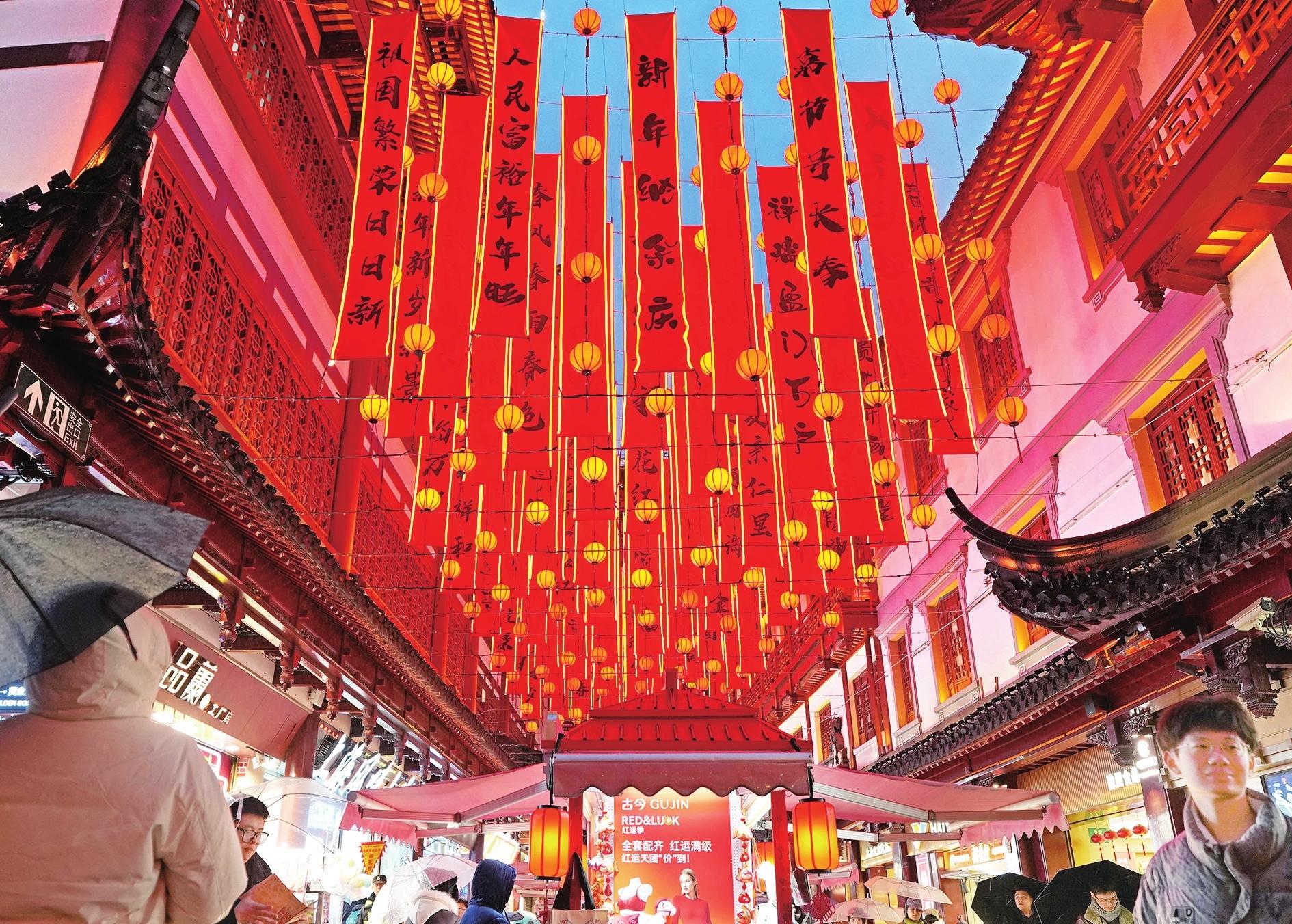 1月26日,豫园灯会上的春联与流光溢彩的花灯营造出新春的喜庆氛围。1月26日晚,以“以梦为马,旷野生花”为主题的2026上海豫园民俗艺术灯会正式亮灯,开启为期36天的海派年味视觉盛宴。 新华社记者 刘颖 摄