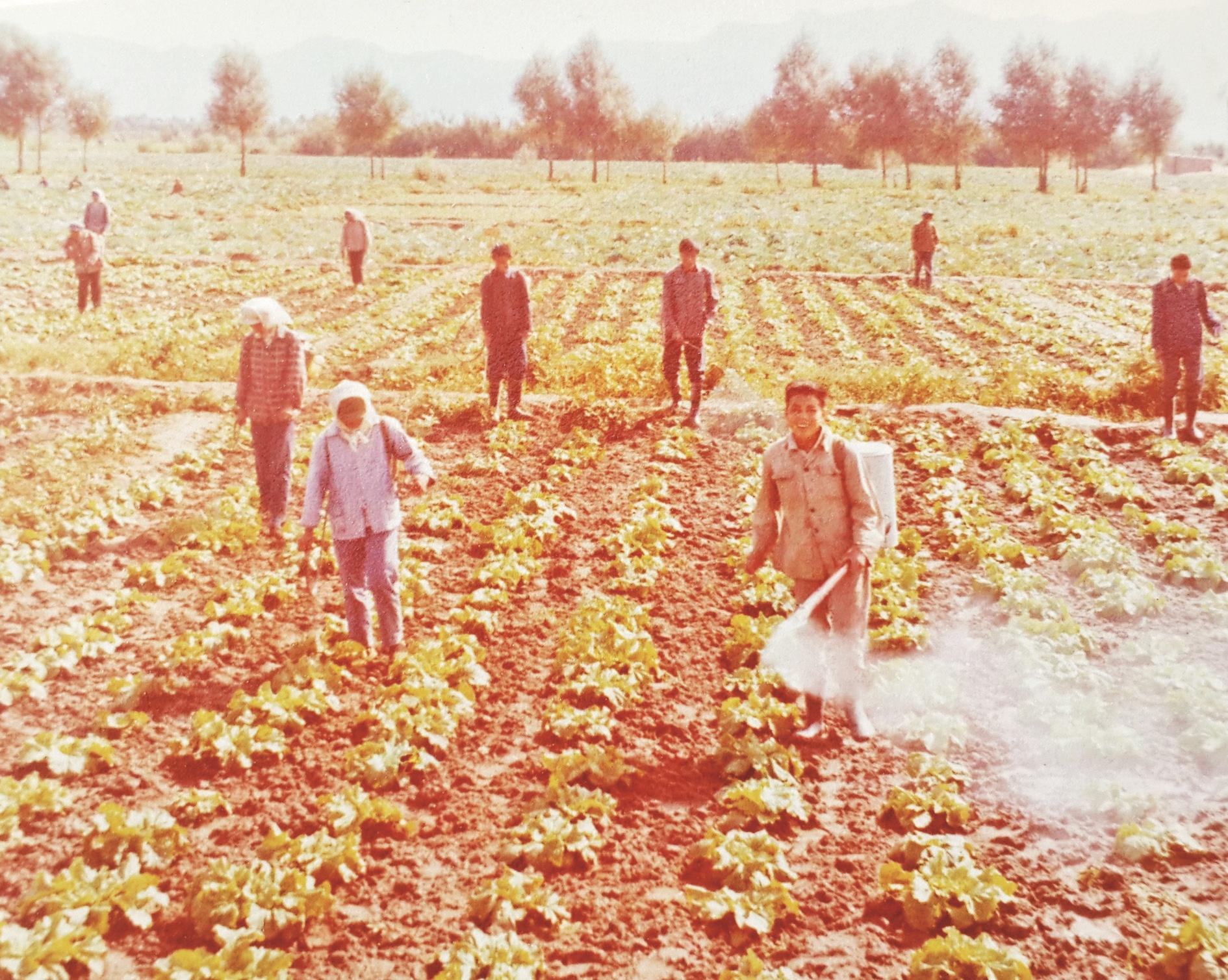 1975年夏,农田打药。(资料图)
