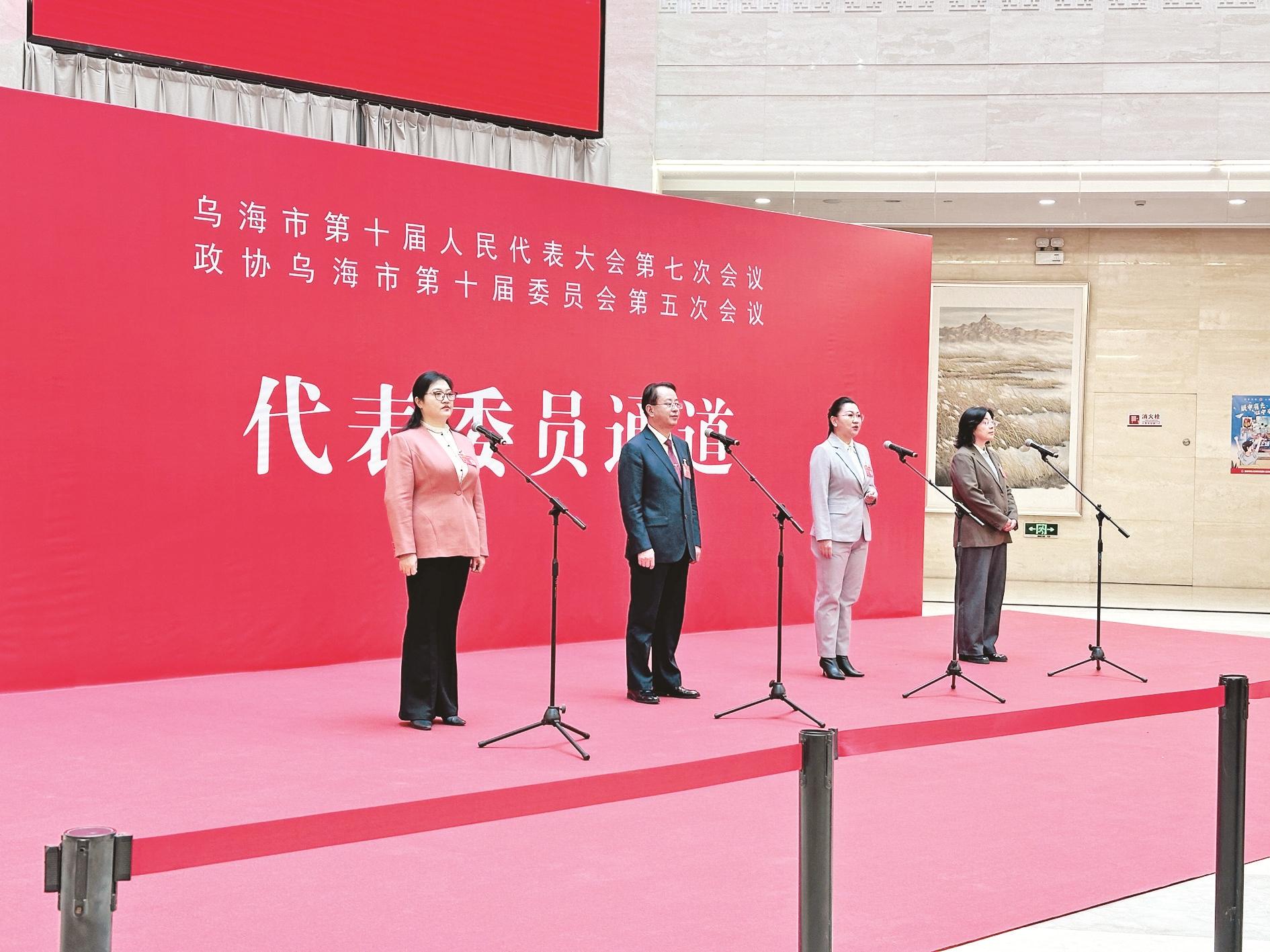 1月29日,乌海市第十届人民代表大会第七次会议、政协乌海市第十届委员会第五次会议第二场“代表委员通道”开启。市人大代表陈爱萍、牛英和市政协委员于淑婷、田杰走上“通道”,围绕产业绿色转型、教育均衡发展、科技创新、惠民服务等话题回答记者提问,回应社会关切。