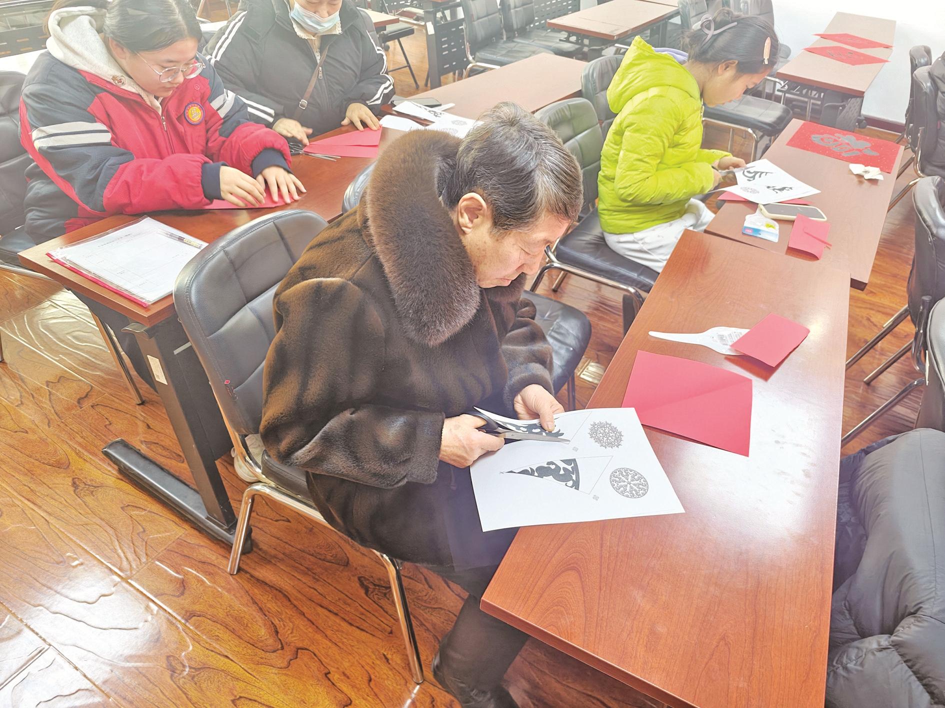 1月29日,巴音赛街道幸福社区开展“瑞马迎春启新岁 尊老爱幼促和谐”写春联送祝福主题活动,居民们在交流学习中制作出承载新年愿望的春联、福字、窗花和拓印作品。 (李薇 摄)