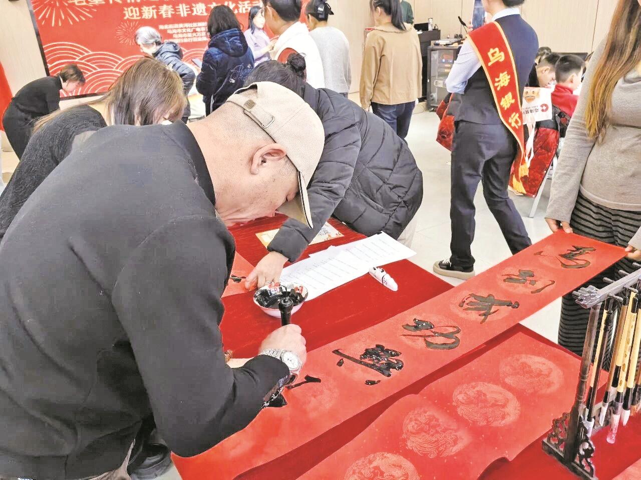 上周,乌达区巴音赛街道团结社区的党群服务中心里暖意融融、墨香四溢。团结社区新时代文明实践站联合乌达区文联共同举办了一场“写春联 迎新春”的活动,书法老师和志愿者现场挥毫泼墨,为街坊邻居们送上一份份“热气腾腾”的新春祝福。