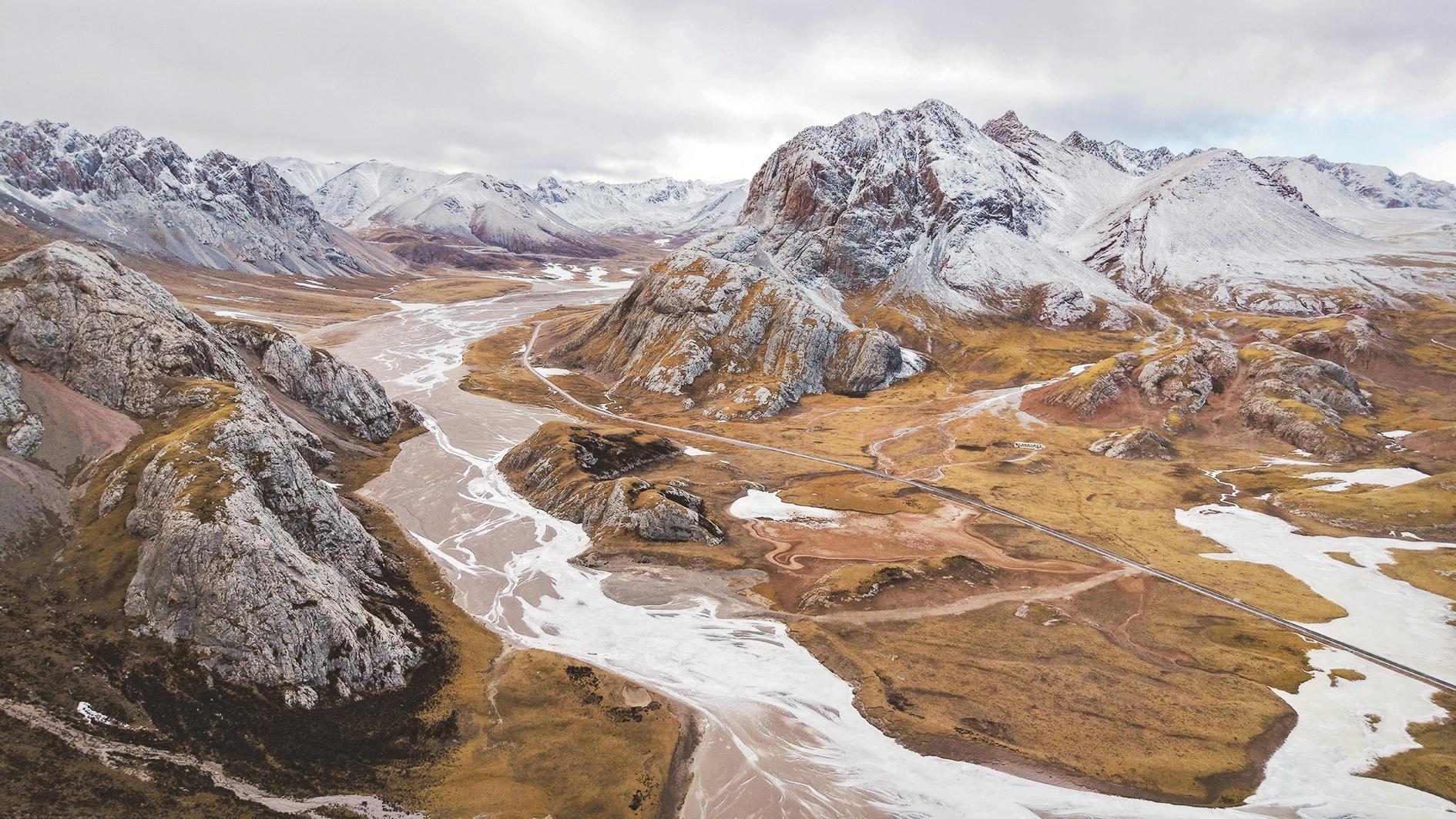 这是1月30日在青海省玉树藏族自治州杂多县境内拍摄的冬景风光(无人机照片)。青海省玉树藏族自治州地处三江之源、青海省南部。隆冬时节,草原苍茫,河湖凝玉,江源大地尽展肃穆壮美的高原冬韵。