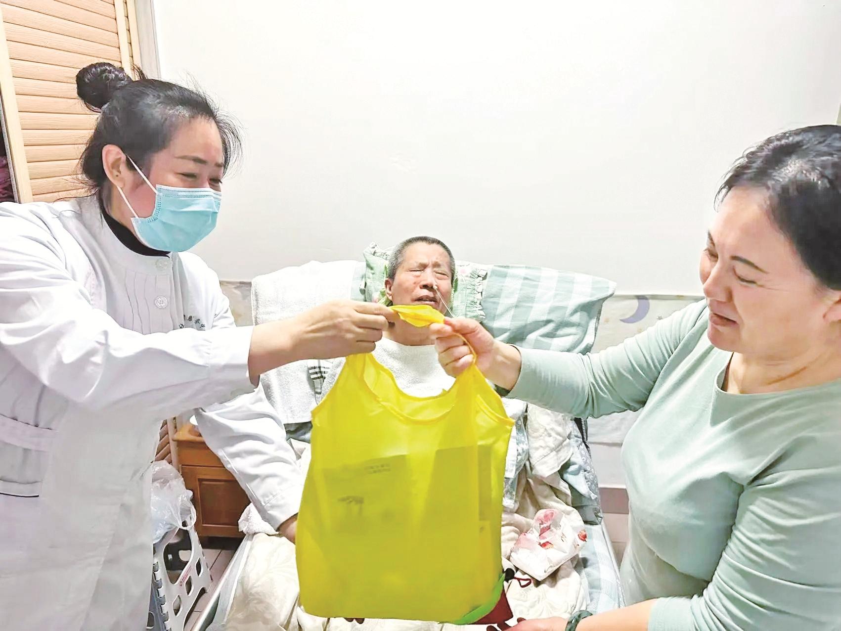 重阳节当天,家庭病床团队带着医疗器械来到辖区有需求的老人家中,为行动不便的老人进行了家庭病床服务。目前,全区7家基层医疗机构实现了这项服务全覆盖,提供伤口换药、导尿、康复指导等10余项上门护理。