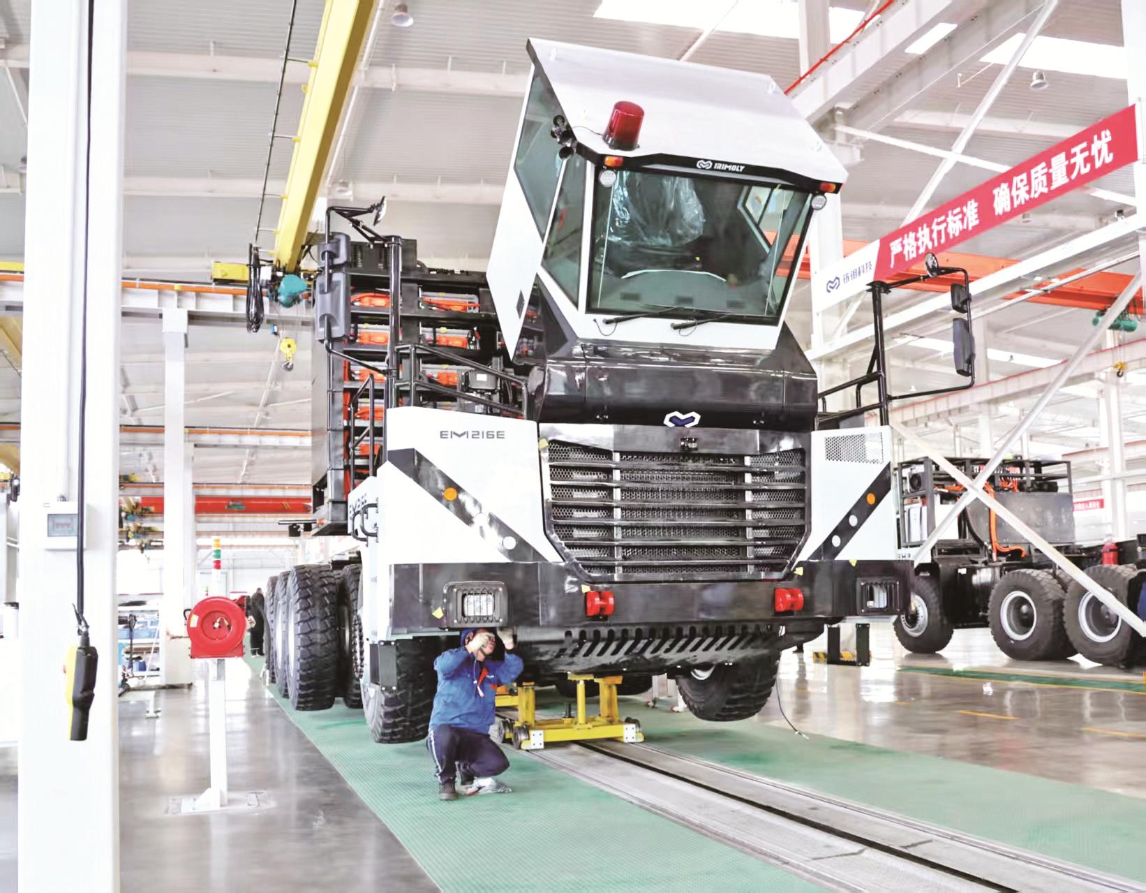 新年伊始,我市各大企业铆足干劲、开足马力,抓生产、赶订单、推项目,以“开局即冲刺”的奋斗姿态,全力冲刺新年“开门红”。图为乌海铱钼新能源科技有限公司总装车间技术工人正在加速组装新能源智能矿卡。