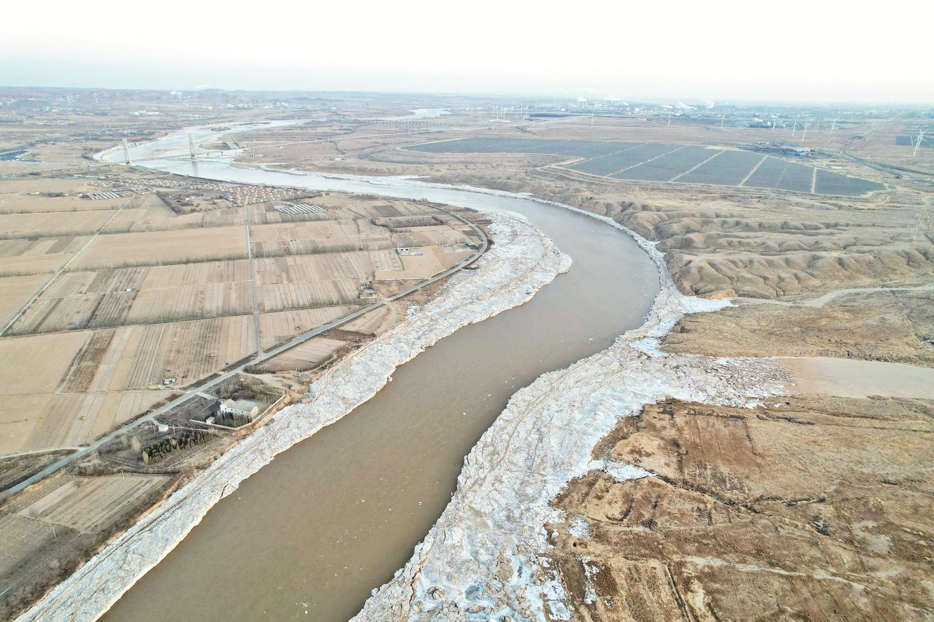 2月6日拍摄的黄河乌海段(无人机照片)。(赵政宇 摄)