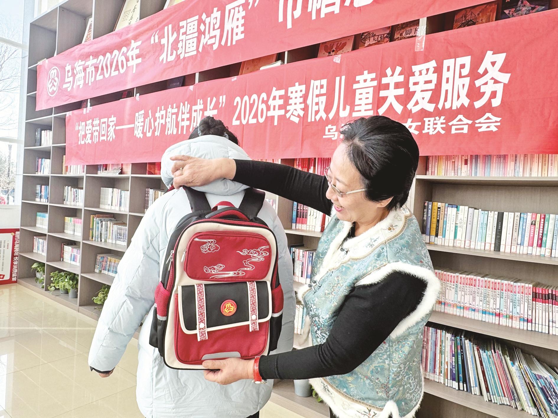 2月5日,市妇联开展“把爱带回家——暖心护航伴成长”2026年寒假儿童关爱服务活动,为“爱心妈妈(阿姨)”与结对儿童发放牛奶、书包等物品。 (段维娜 摄)