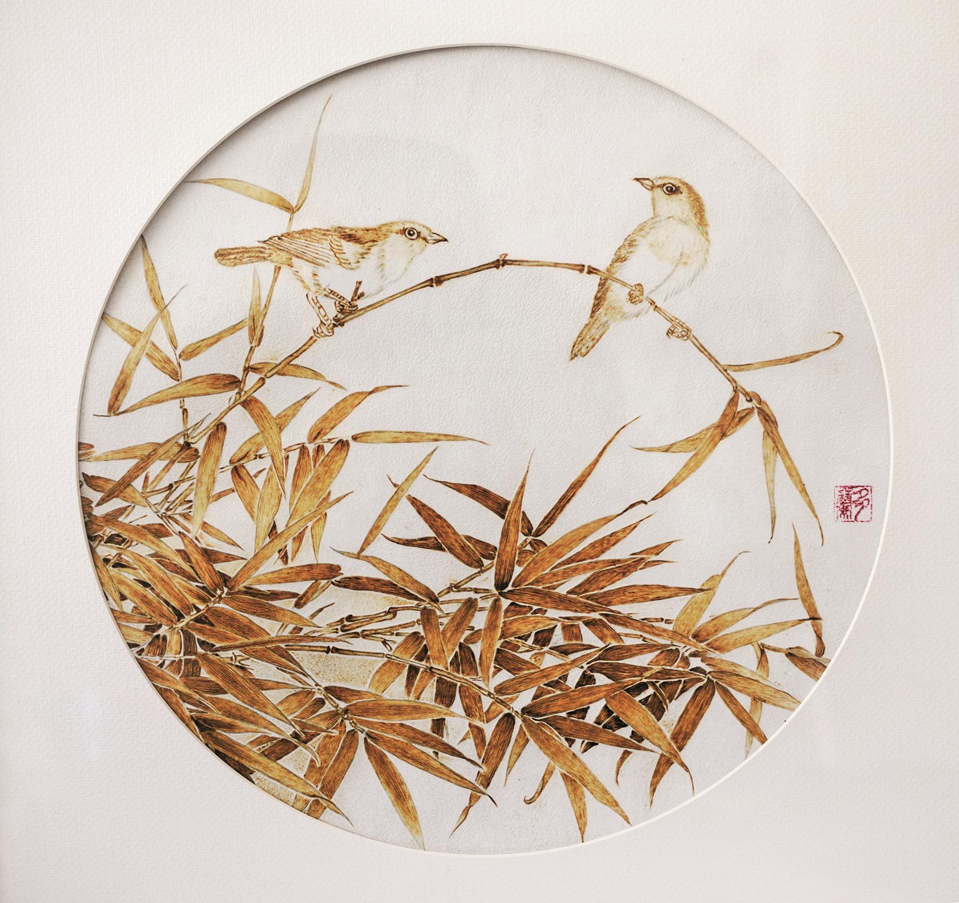 2014年底,张丽军得知杭州烙画大师闫贵海擅长丝绢烙画,便主动求教。2015年初春,她赴杭州拜师,开启新的学习之路。闫贵海倾囊相授,其“点笔技法”让她受益终身——以点的疏密、深浅、大小表现质感与光影,让丝绢烙画层次更丰富、画面更灵动。