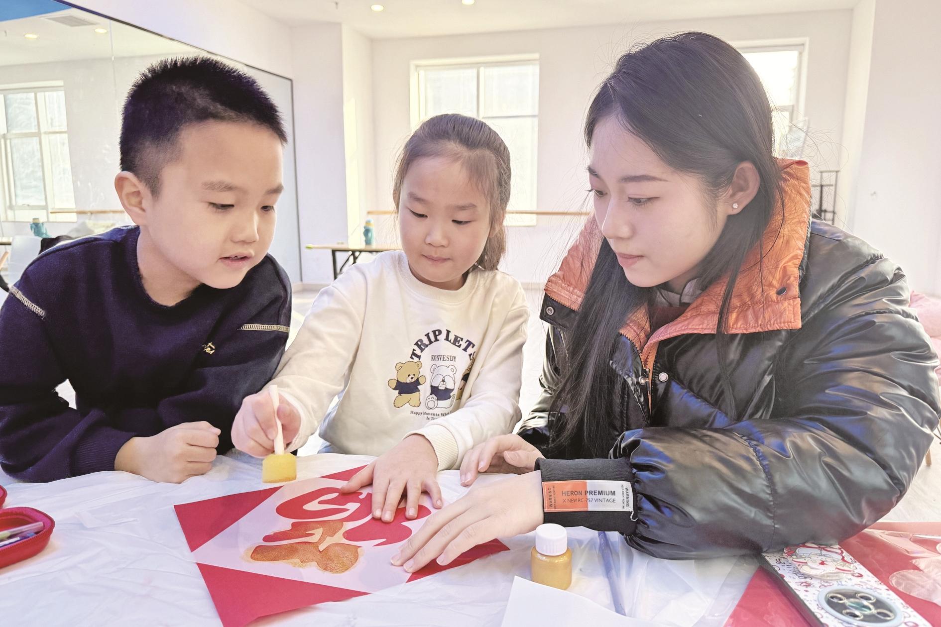 为保护和传承非物质文化遗产,进一步丰富辖区青少年精神文化生活,近日,海勃湾区滨河街道湖东社区新时代文明实践站开展了“非遗拓印传古韵 福暖童心迎新春”活动。志愿者向大家讲解了中国拓印的历史起源、文化内涵、发展变化、方法技巧等,随后指导家长和孩子们利用已有的工具、颜料、纸张,制作出一幅幅墨色均匀的拓印福字和生肖图,现场氛围欢快温馨。(黄建飞 摄)