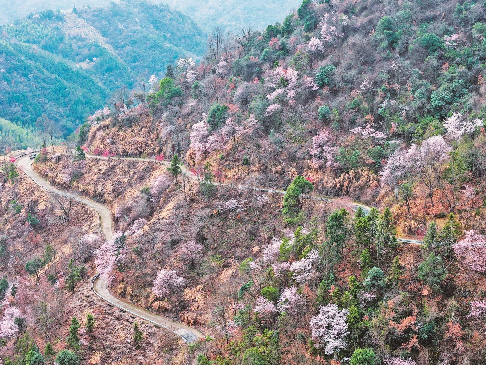 近日,浙江省建德市三都镇数万亩野生樱花进入盛花期,以“天路寻樱·山野赴春”为主题的2026建德三都春季山花旅游季活动在前源村盘山公路核心赏樱区开启。漫山遍野的粉色、白色野樱花次第绽放,将山乡装点成春意盎然的美丽画卷,吸引众多游客前来打卡。活动期间,三都镇推出系列主题活动,融合自然观光、农事体验、产业推介和人才招引,全面呈现青年入乡新成效和农文旅融合新场景,带动当地民宿、农家乐消费升温。