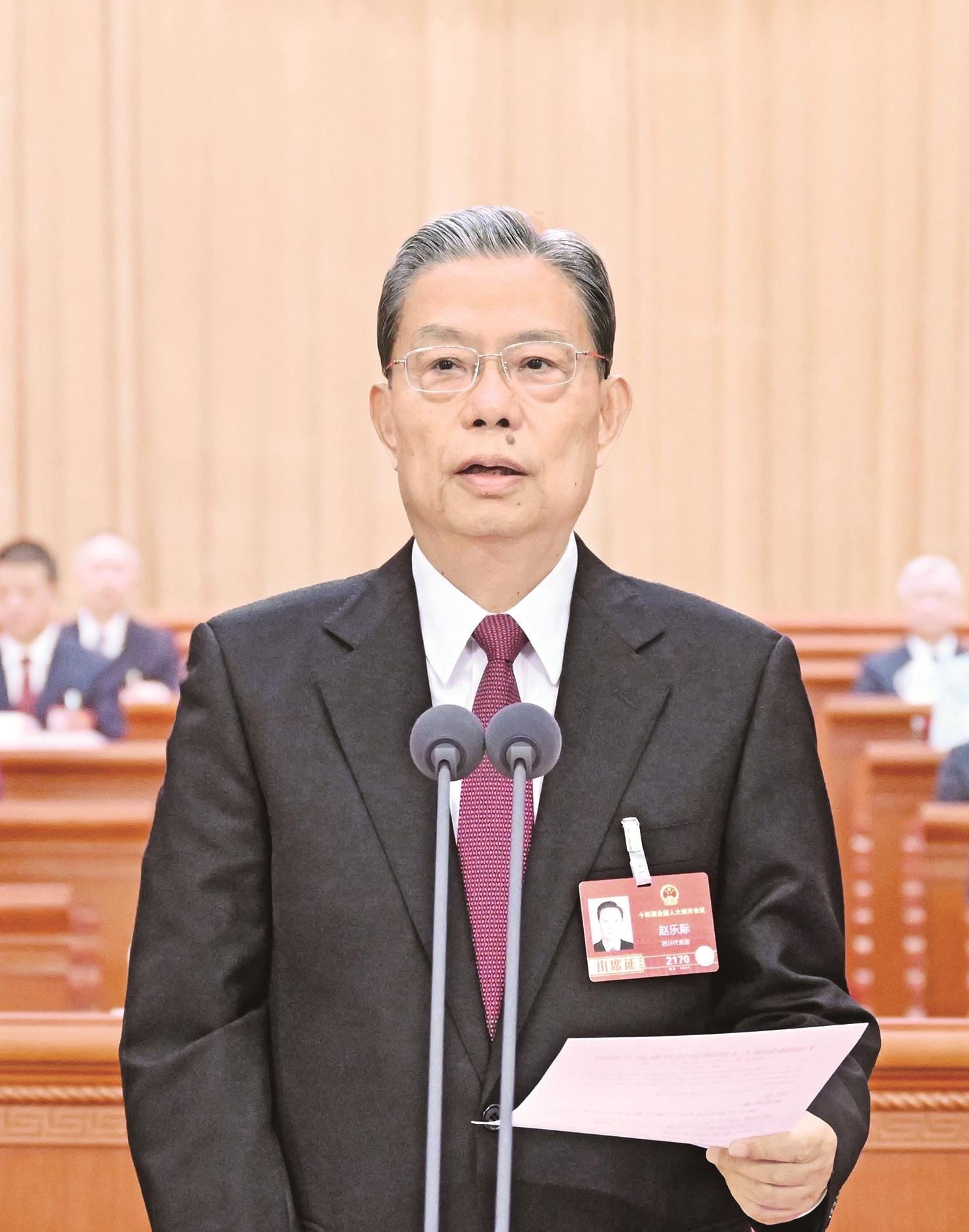 大会主席团常务主席、执行主席赵乐际主持大会。大会主席团常务主席、执行主席李鸿忠、王东明、肖捷、郑建邦、丁仲礼、蔡达峰、何维、武维华、铁凝、彭清华、张庆伟、洛桑江村、雪克来提·扎克尔、刘奇在主席台执行主席席就座。