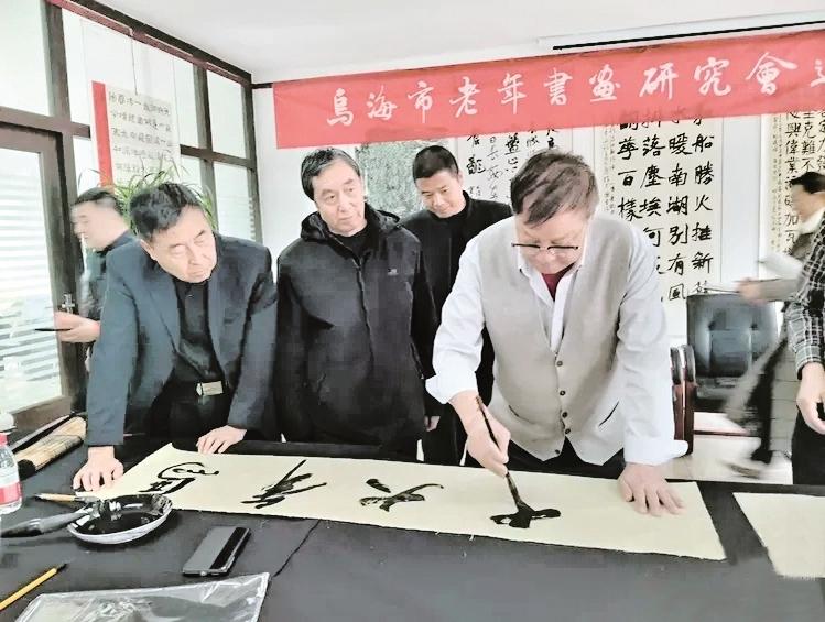 日前,市老年书画研究会举行书画笔会。笔会现场墨香四溢、氛围热烈,大家以笔会友、以墨传情,挥毫泼墨间尽展书法艺术魅力与新时代老年人的精神风采。 (靳婧 摄)