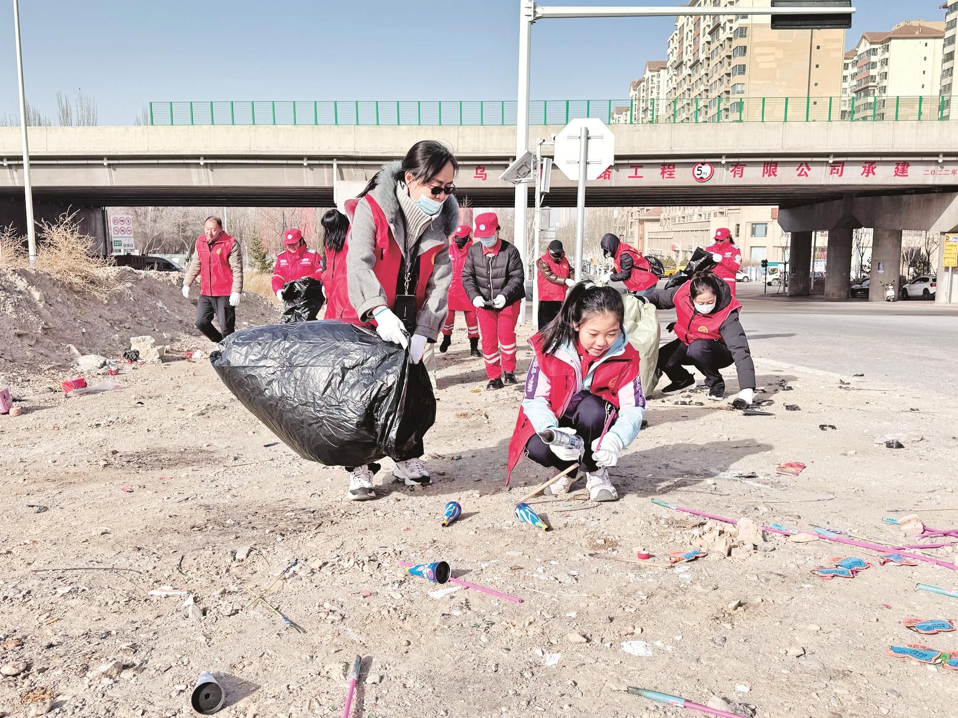 当天,市蓝天医疗救援协会的志愿者走进海勃湾区新华街道新海社区河槽东三街坊,清扫区域内遗留的烟花爆竹碎屑和杂物。队伍中,一个稚嫩的身影引人注目,她叫于梓萱,是五年级学生。在爸爸的带领下,她加入志愿服务队伍,戴着手套、提着垃圾袋,认真捡拾路边的垃圾。“今天是学雷锋纪念日,爸爸带我来体验志愿服务。能为城市环境出一份力,我心里特别自豪。”于梓萱说。