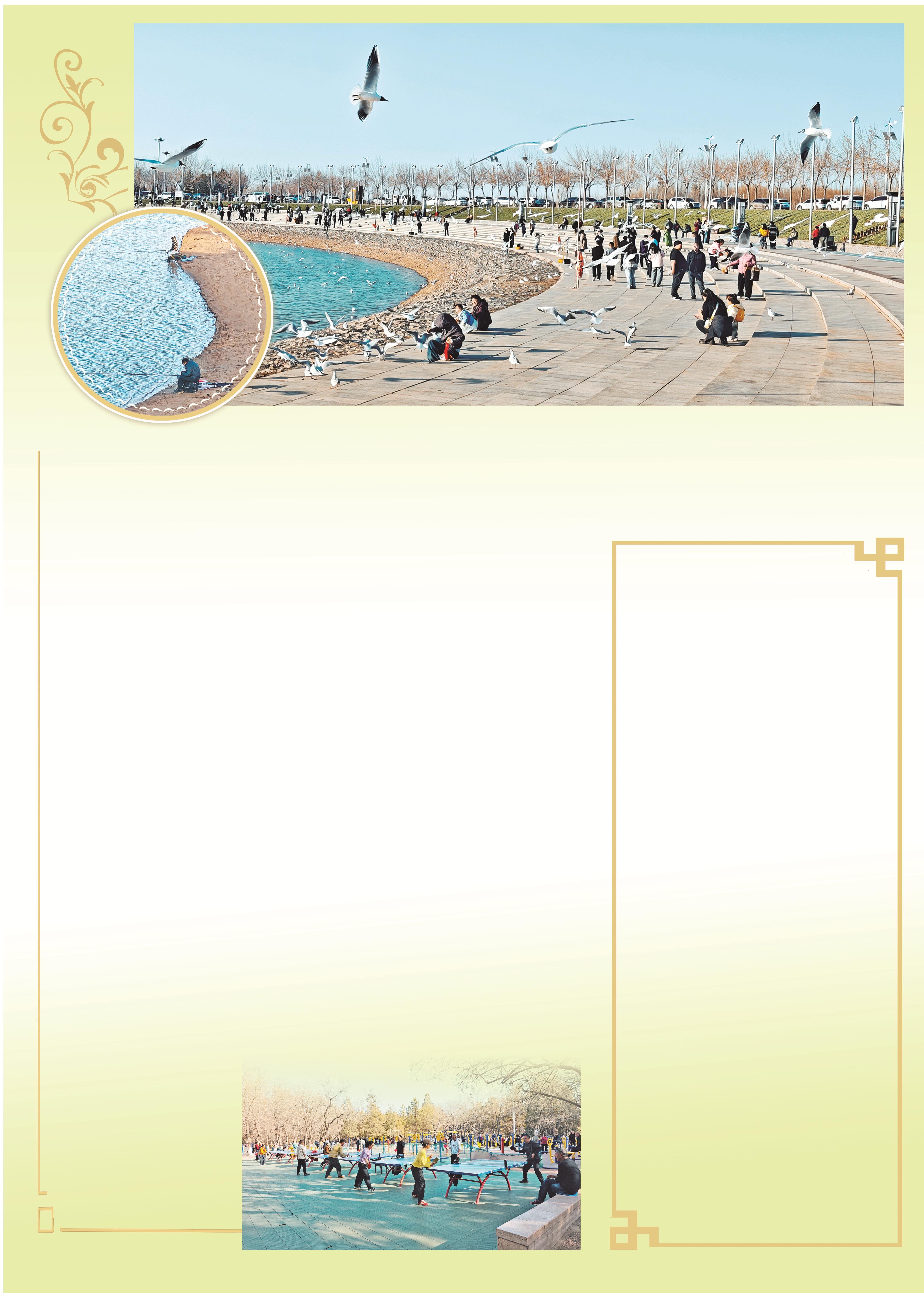 其实,春天对于乌海而言,最明显的标志就是“老朋友”红嘴鸥的到来。每年一到三四月份,成群的红嘴鸥便会回到乌海,也让乌海湖成为最热闹的地方。它们时而展翅翱翔,时而掠过水面,时而俯冲觅食,在蓝天映衬下显得格外灵动。市民们倚栏驻足,望着这些自然界的精灵,脸上充满笑意。孩子的笑声、鸟儿的鸣叫声、相机的“咔嚓”声交织在一起,就像一首春天的舞曲。前来观鸟的市民王根生说:“我每年春天都会来乌海湖看红嘴鸥,你看咱们湖水清清的,天也蓝蓝的,多好呀,这才是春天该有的样子。”