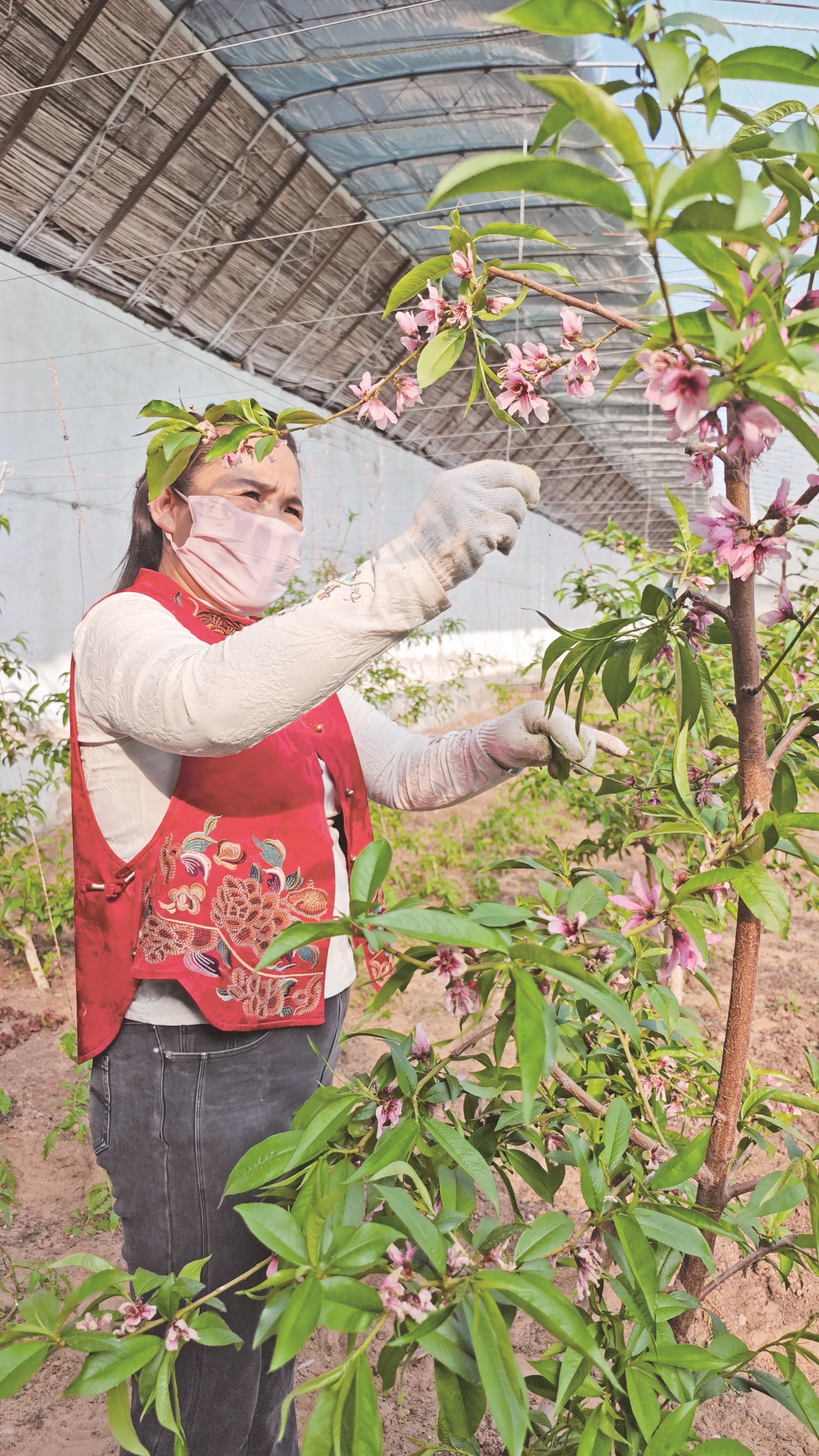 一年之计在于春,春天对农户们来说意义非凡。走进海勃湾区千里山镇团结新村居民鲁江平的温室大棚,暖意扑面而来。一棵棵桃树枝叶舒展,粉嫩的桃花缀满枝头。正在细心修剪枝叶的鲁江平说:“温室桃树管理讲究精细,疏花疏果,温度、湿度调控都不能马虎,现在多费心,夏天才能结出又大又甜的果子。”问到对新一年有什么期盼时,她笑着说:“就盼着这一棚的瓜果蔬菜丰收,卖个好价钱。”