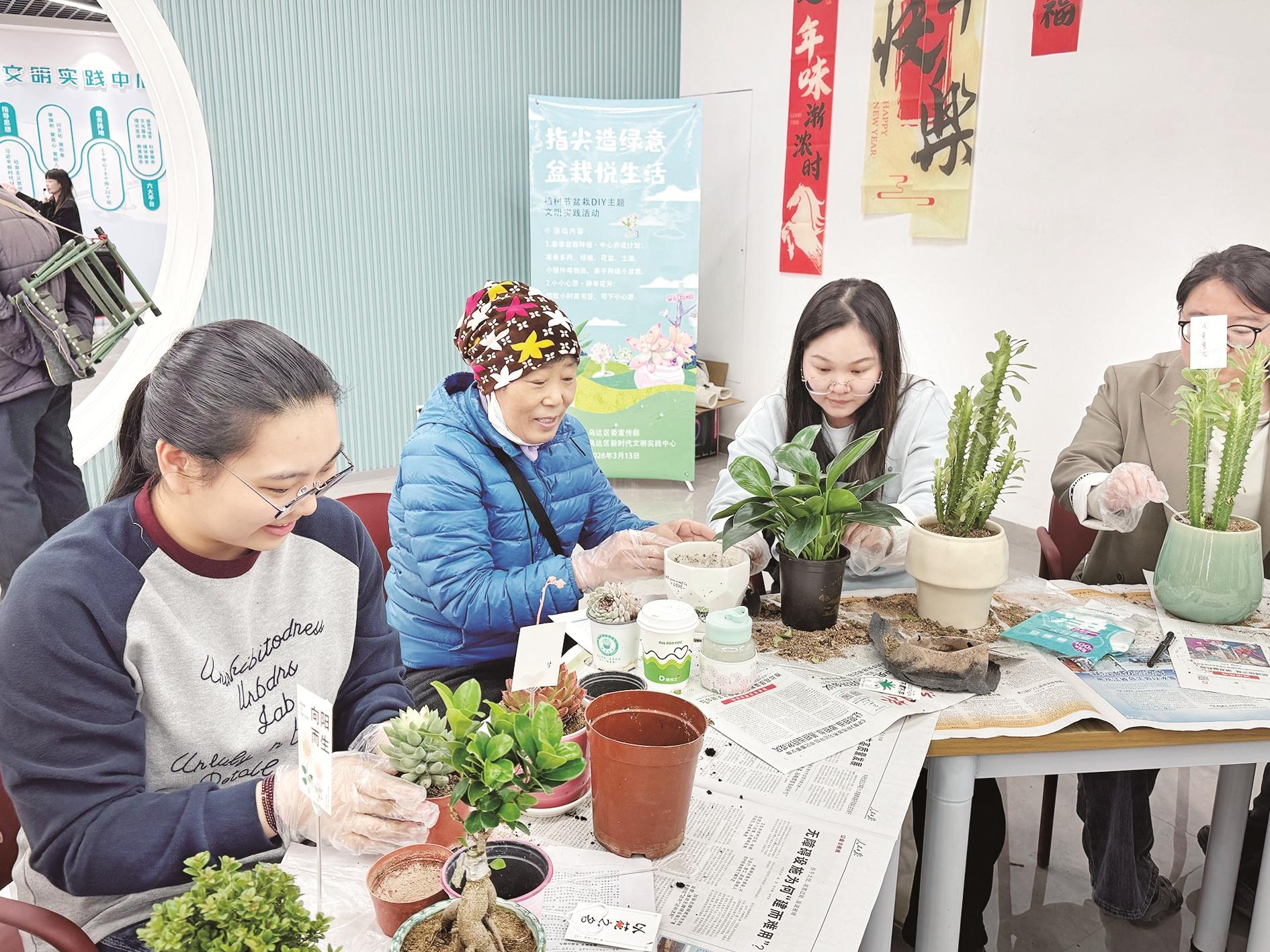 3月13日,乌达区新时代文明实践中心开展“指尖造绿意 盆栽悦生活”植树节盆栽DIY主题文明实践活动。 (段维娜 摄)