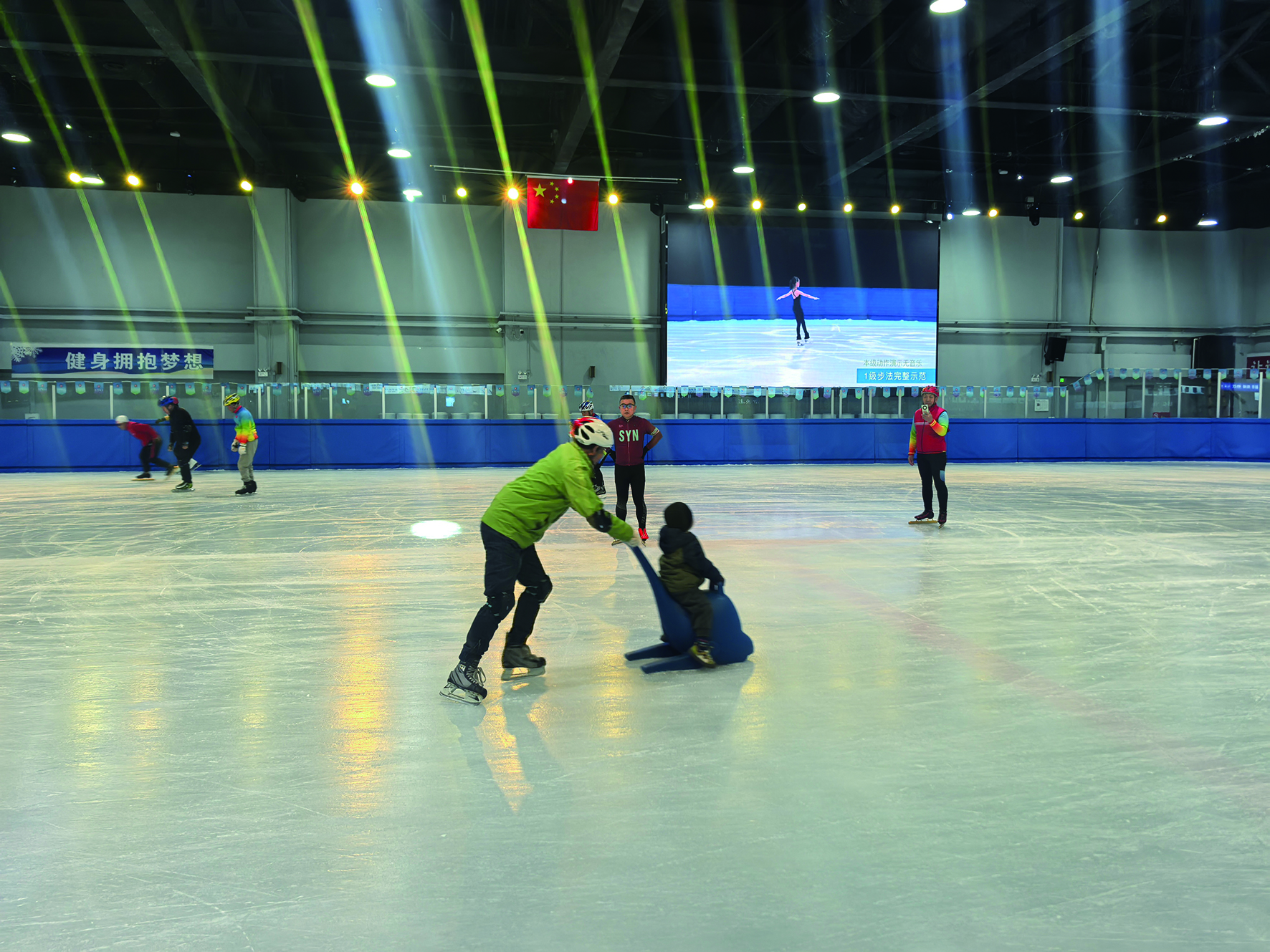●家长与孩子在乌兰察布滑冰馆享受滑冰的乐趣 乌兰察布滑冰馆供图