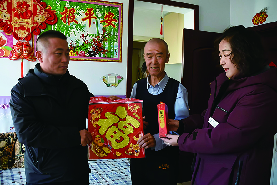 本报讯(记者 鲍娜)1月7日,集宁区前进路街道电管社区携手乌兰察布市福万家物业服务有限公司,走进了桃源新村小区,为这里的困难家庭、老党员以及高龄老人送去了新春的祝福和关怀。