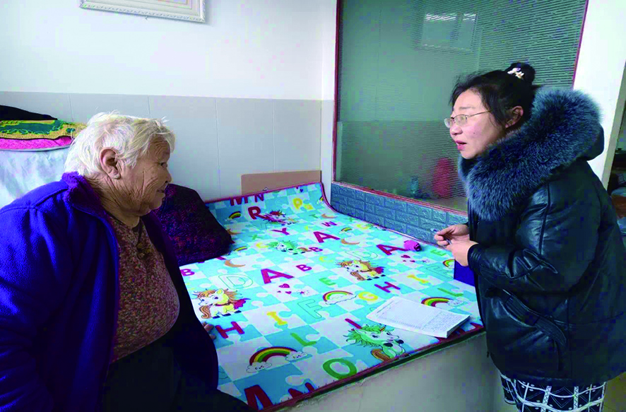 ●社区工作人员与老人亲切地 “唠家常” 本报记者 马佳敏 摄