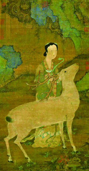 神话题材的人物画,多以如意彰显仙人清雅形象。宋人所绘《仙岩寿鹿图》、元代张渥所绘《九歌图》中,女仙皆持如意,其头部由流畅的曲线构成三瓣状结构,形状与绘画中的灵芝高度相似,与唐代遗存数柄实物如意有明显不同。宋人韦骧《芝后记》称初生灵芝“黄若金为如意,而小不胜执”(《钱唐韦先生文集》卷一七),以如意喻指灵芝形状。《释氏要览》记载,如意“状如云叶,又如此方篆书心字”(《释氏要览》卷中《如意》)。篆书“心”字形状与《仙岩寿鹿图》《九歌图》中芝状如意相合。最迟到宋元时期,如意形状已改变,接近灵芝形态,皆被赋予美好意蕴,成为吉祥之物。