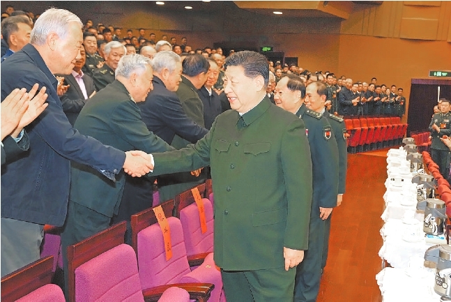 下午4时许,习近平来到老同志中间,全场响起热烈掌声。习近平同大家亲切握手、互致问候,关切询问他们的身体和生活情况,共同回顾过去一年党、国家和军队事业走过的不平凡历程、取得的重大成就。老同志们一致表示,要更加紧密地团结在以习近平同志为核心的党中央周围,坚持以习近平新时代中国特色社会主义思想为指导,深入贯彻习近平强军思想,深刻领悟“两个确立”的决定性意义,坚决做到“两个维护”,贯彻军委主席负责制,弘扬光荣传统、永葆政治本色,坚定信心、团结奋斗,继续为打好实现建军一百年奋斗目标攻坚战,为以中国式现代化全面推进强国建设、民族复兴伟业作出积极贡献。