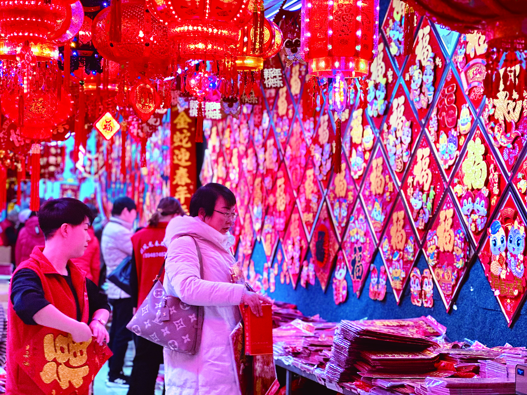 在集宁区浙江小商品批发市场,红彤彤的春联、寓意吉祥的福字挂满了摊位,放眼望去,宛如一片喜庆的红色海洋。市民们穿梭其中,精心挑选着心仪的物品,为家中增添新春的气息。除了购置新春装饰,和家人美美地吃一顿团圆饭,也是大多数人过小年的选择。“恭喜恭喜你呀,恭喜恭喜你……”走进位于察哈尔西街的都乐玛鲜生超市,欢快的新年歌曲在超市内回荡。货架上摆满了琳琅满目的年货,包装精美的糖果、各式各样的坚果、品种繁多的礼盒……过道里人头攒动,热闹非凡。
