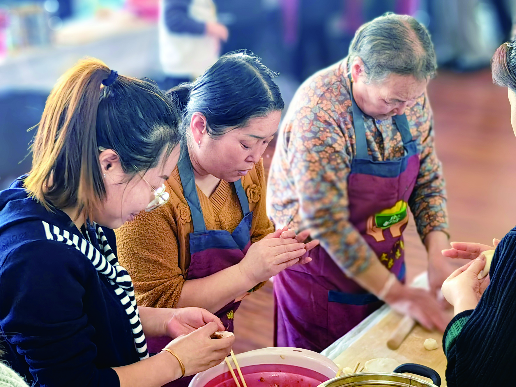 在写春联、剪窗花区域,墨香四溢,彩纸纷飞。书法爱好者们笔锋游走,一副副寓意吉祥的春联跃然纸上;剪纸能手们精心剪裁,一张张精美的窗花栩栩如生。居民们围在一旁,不时发出赞叹之声,纷纷挑选自己心仪的作品,准备带回家中装点新年。在包饺子比赛中,大家分成若干小组,擀面皮、包饺子、摆盘,手法娴熟,不一会儿,一个个饱满圆润的饺子便摆满了盘子。现场观众也热情高涨,为各小组加油助威。