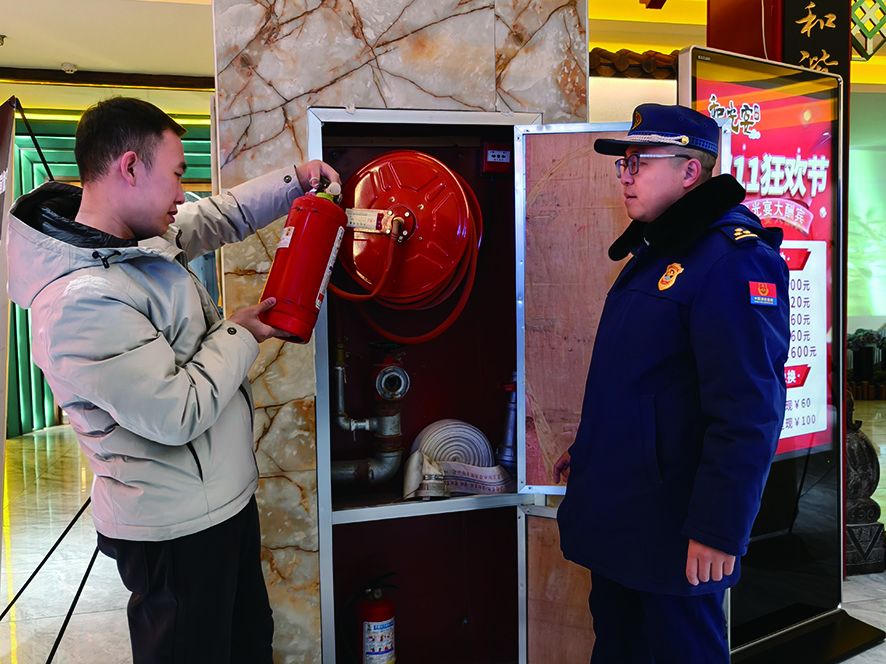 ●消防员检查饭店消火栓 本报记者 鲍娜 摄