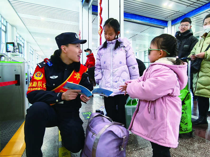1月22日,以“青春志愿行 温暖回家路”为主题的2025年内蒙古青年志愿者服务春运“暖冬行动”在集宁南站正式启动,集宁车站派出所积极投身其中。“暖冬行动”从2025年1月14日持续至2月22日,为期40天,活动范围覆盖各大交通枢纽及周边区域,为广大旅客提供温暖、安全的出行保障。在集宁南站,集宁车站派出所的民警与青年志愿者并肩作战。在咨询台,他们耐心解答旅客的各类问题,协助更新电子屏幕信息,让旅客第一时间掌握列车动态。面对老弱病残孕等特殊群体,民警主动上前询问需求,帮忙搬运行李,关怀身体不适的旅客,让他们在旅途中感受到温暖。据车站派出所民警卢奕丰介绍,春运志愿服务作为共青团组织持续开展30年的品牌项目,今年更注重根据春运场景的变化精准设置岗位,及时调配力量,保障重大站点服务。集宁车站派出所还协同有关部门维护人群拥堵路段的秩序,帮扶困难旅客,并参与春节期间的文旅推介志愿服务,为地方发展助力。卢奕丰表示:“集宁车站派出所民警参与‘暖冬行动’,践行了人民警察为人民的宗旨,我们将坚守岗位,持续优化服务,提升旅客出行体验。”