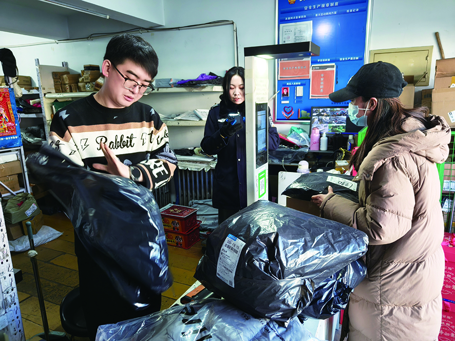 ●驿站店员为客人取件、寄件本报记者 李梦娜 摄
