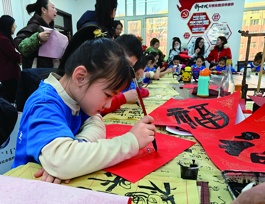 ●孩子们书写春联 本报记者 朱旭敏 摄