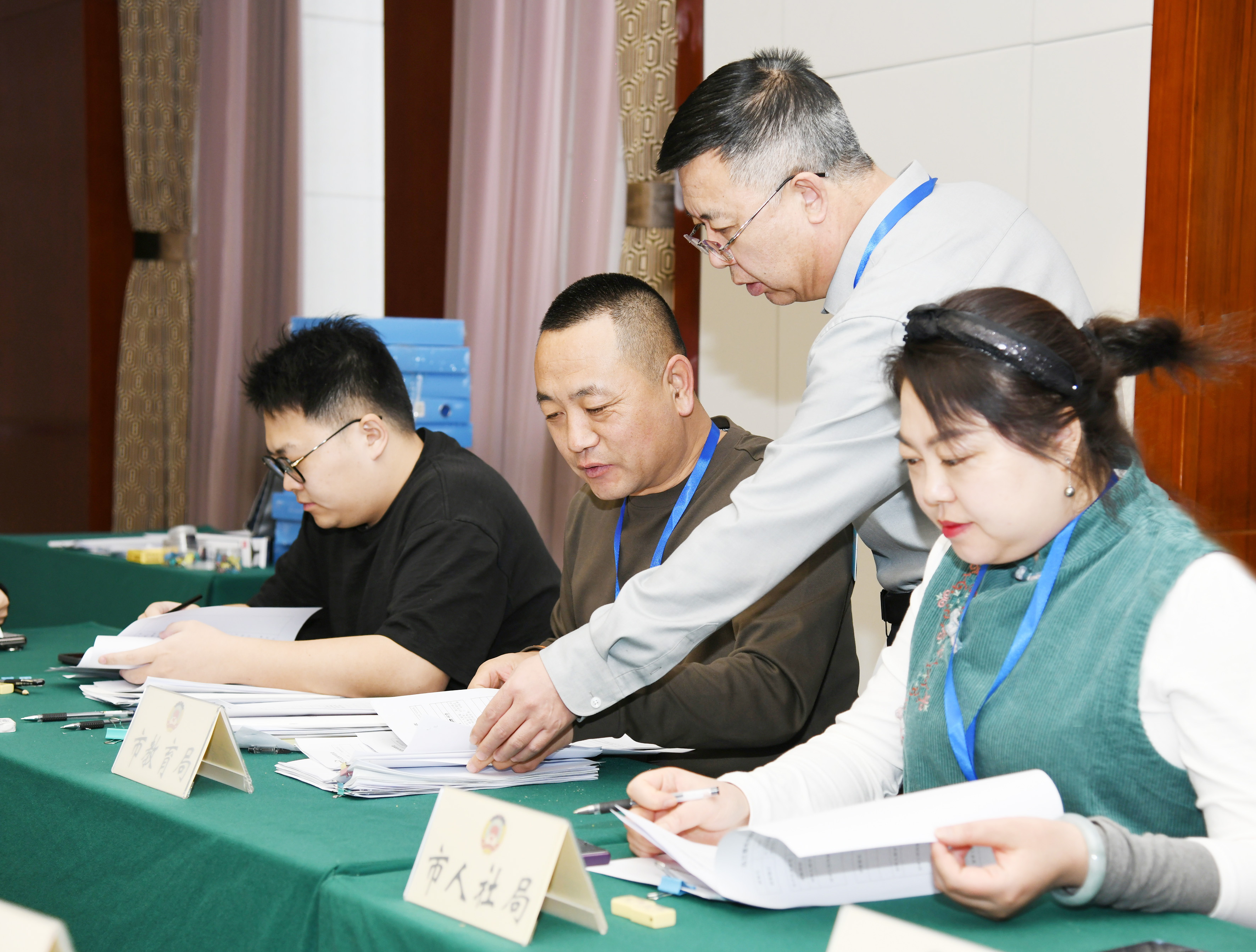 工作人员正在认真整理委员提案。本报记者 郭小燕 摄